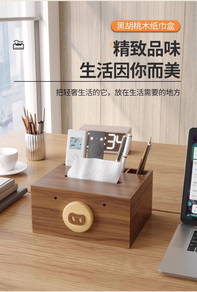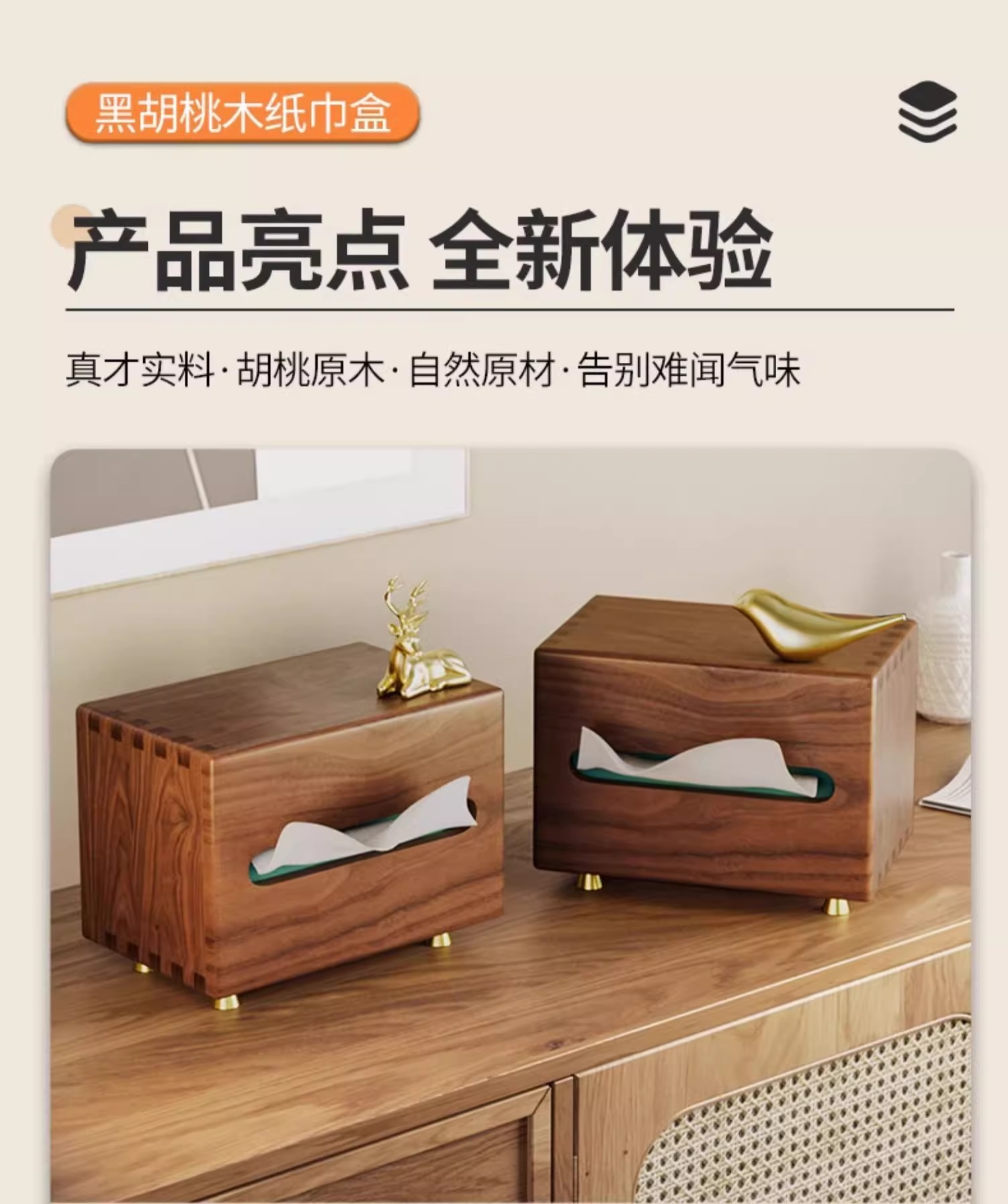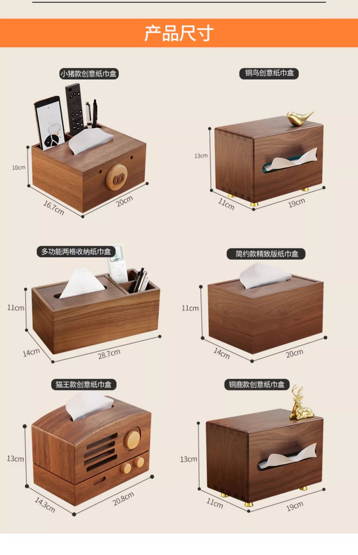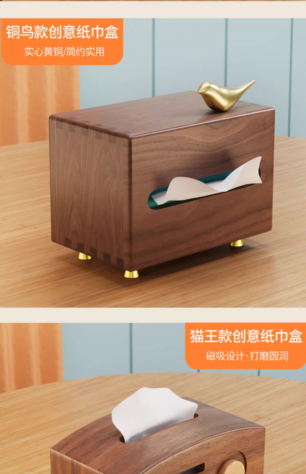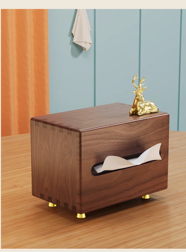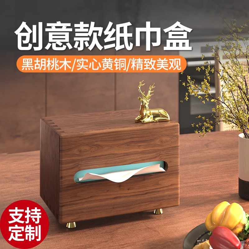 [창조적 인 뜨거운 판매] 검은 호두 티슈 박스 하이 엔드 다이닝 룸 거실 데스크탑 다기능 솔리드 우드 종이 상자스토어 가기