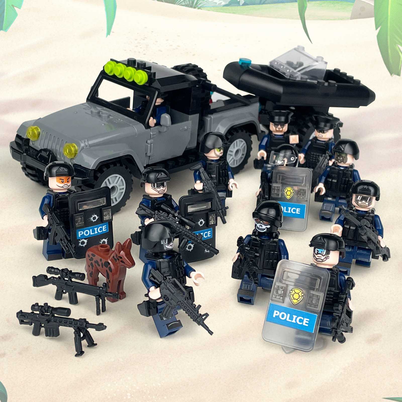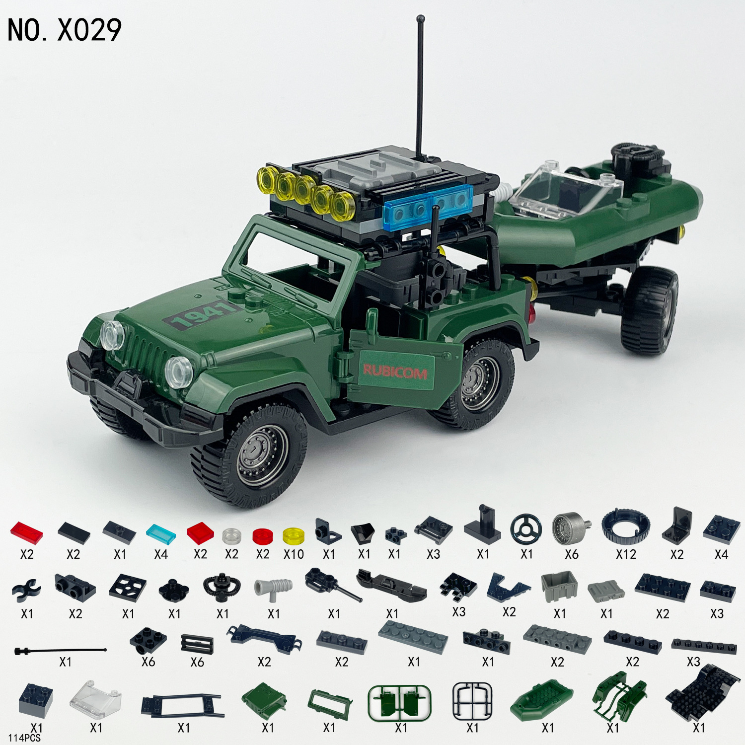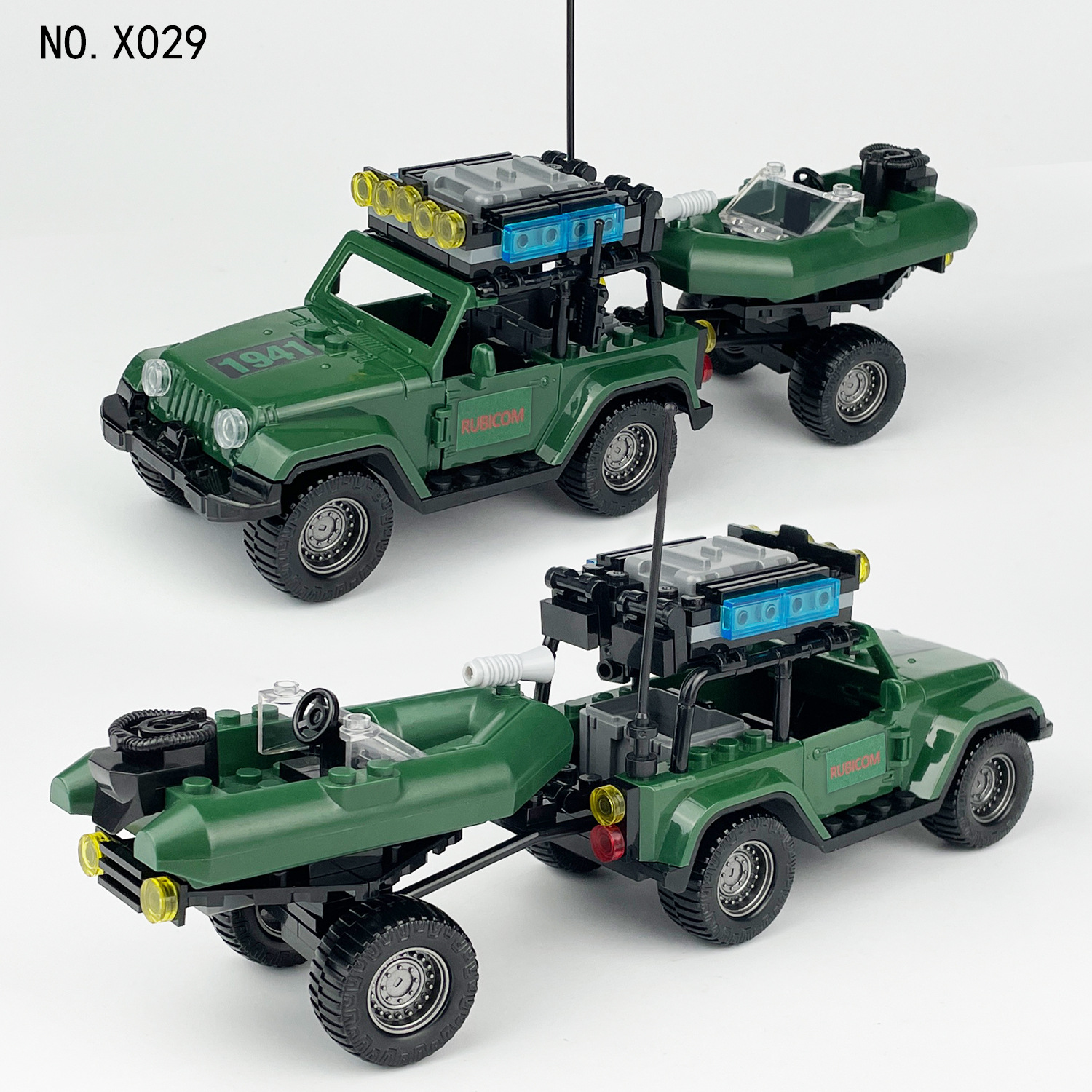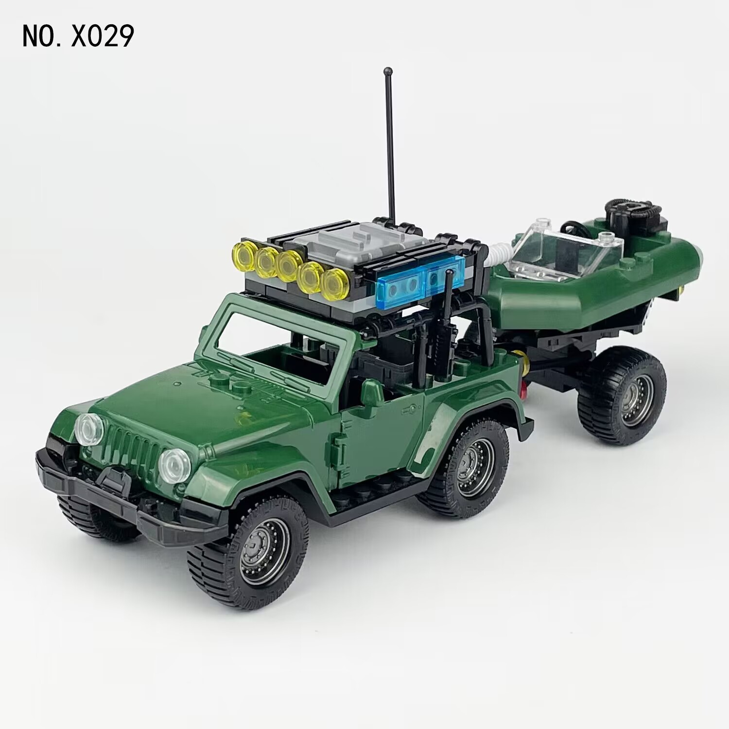 메이가오 습지 도살꾼 오프로드 차량 X029 액세서리 군용 녹색 고무보트 해외 도매 소형 블록 장난감스토어 가기