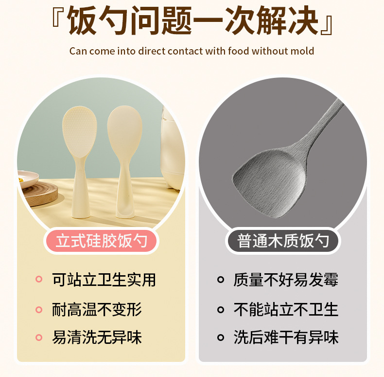 수직 쌀 숟가락 비 스틱 쌀 삽 높은 온도 저항 숟가락 가정용 전기 밥솥 쌀 서 실리콘 쌀 숟가락스토어 가기