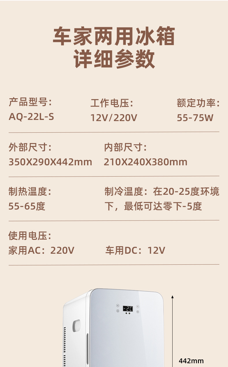 더블 냉동 22L 가정용 자동차 냉장고 차 냉각 및 난방 상자 미니 냉장고 학생 기숙사 미니 냉장고