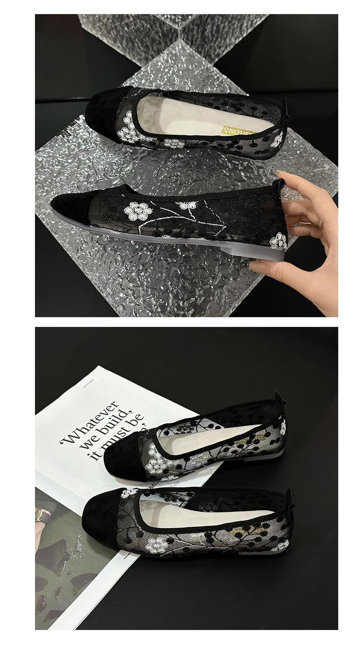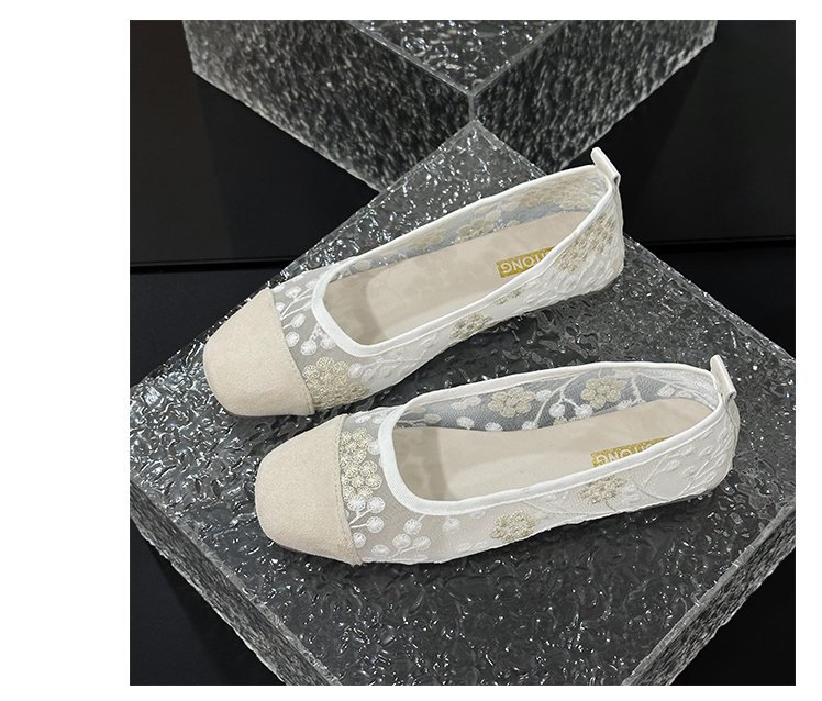여름 얕은 입 부드러운 밑창 중국 싱글 레이어 신발 통기성 레트로 스퀘어 토 작은 샤넬 스타일 어머니 신발 플랫 슬립 온 신발스토어 가기