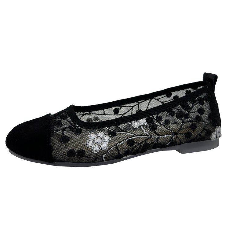 여름 얕은 입 부드러운 밑창 중국 싱글 레이어 신발 통기성 레트로 스퀘어 토 작은 샤넬 스타일 어머니 신발 플랫 슬립 온 신발