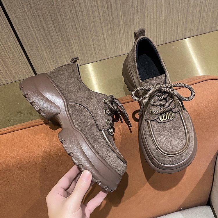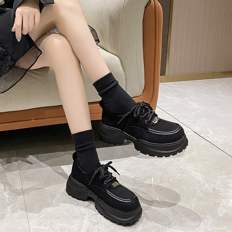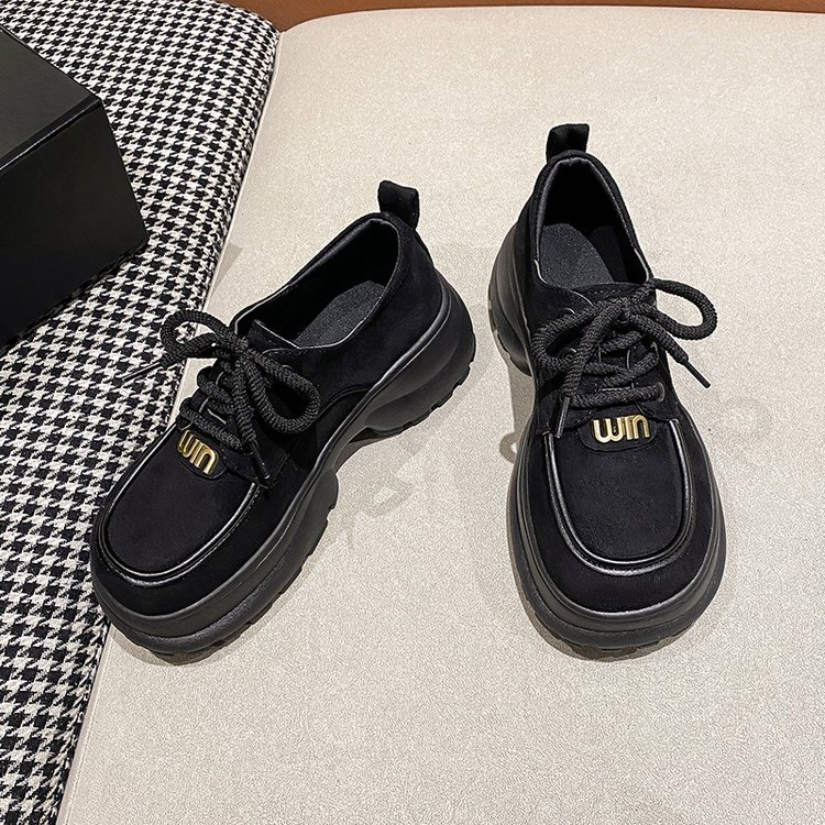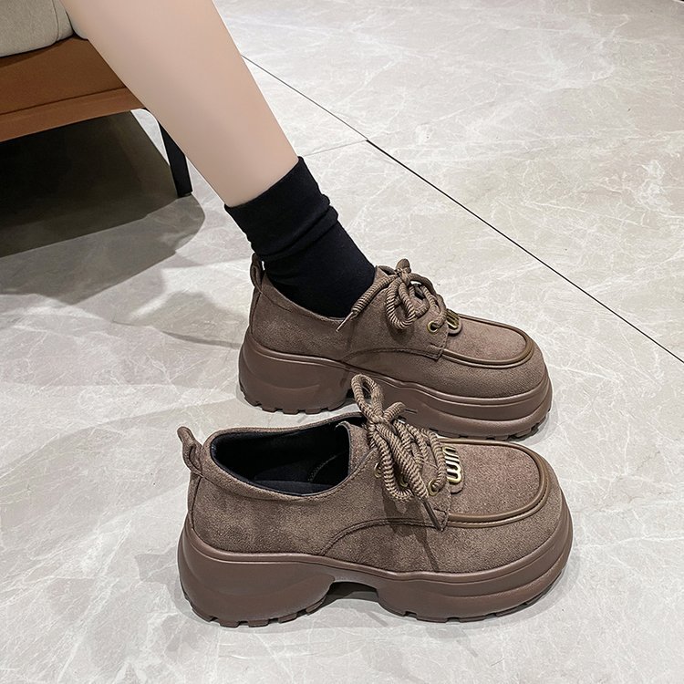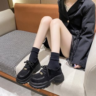 아카데미 스타일 로퍼 여성 2024 봄, 여름 및 가을 새로운 도착 금속 버클 두꺼운 힐 싱글 레이어 신발 두꺼운 단독 빈티지 레이스 업 작은 가죽 신발스토어 가기