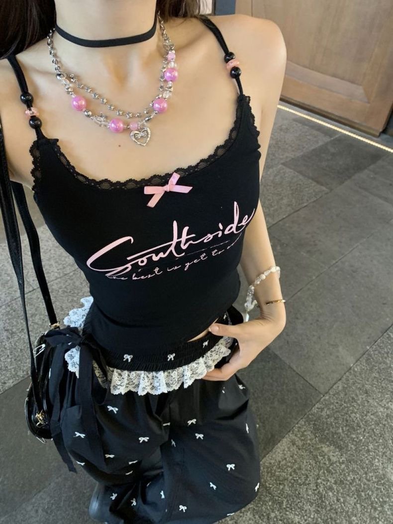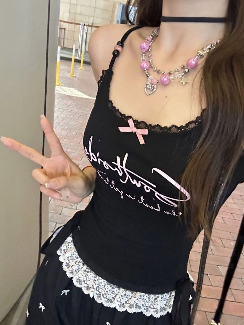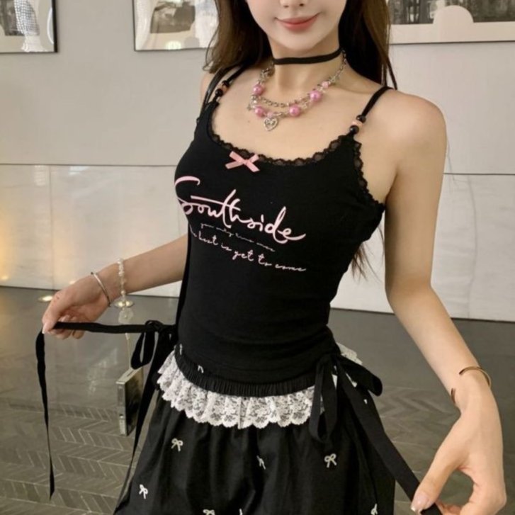 재고! 순수한 욕망 블랙 레이스 편지 카미솔 여성 여름 프랑스 섹시한 달콤하고 뜨거운 짧은 탑스토어 가기