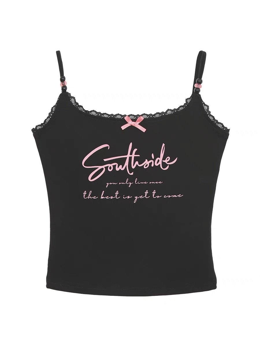 재고! 순수한 욕망 블랙 레이스 편지 카미솔 여성 여름 프랑스 섹시한 달콤하고 뜨거운 짧은 탑