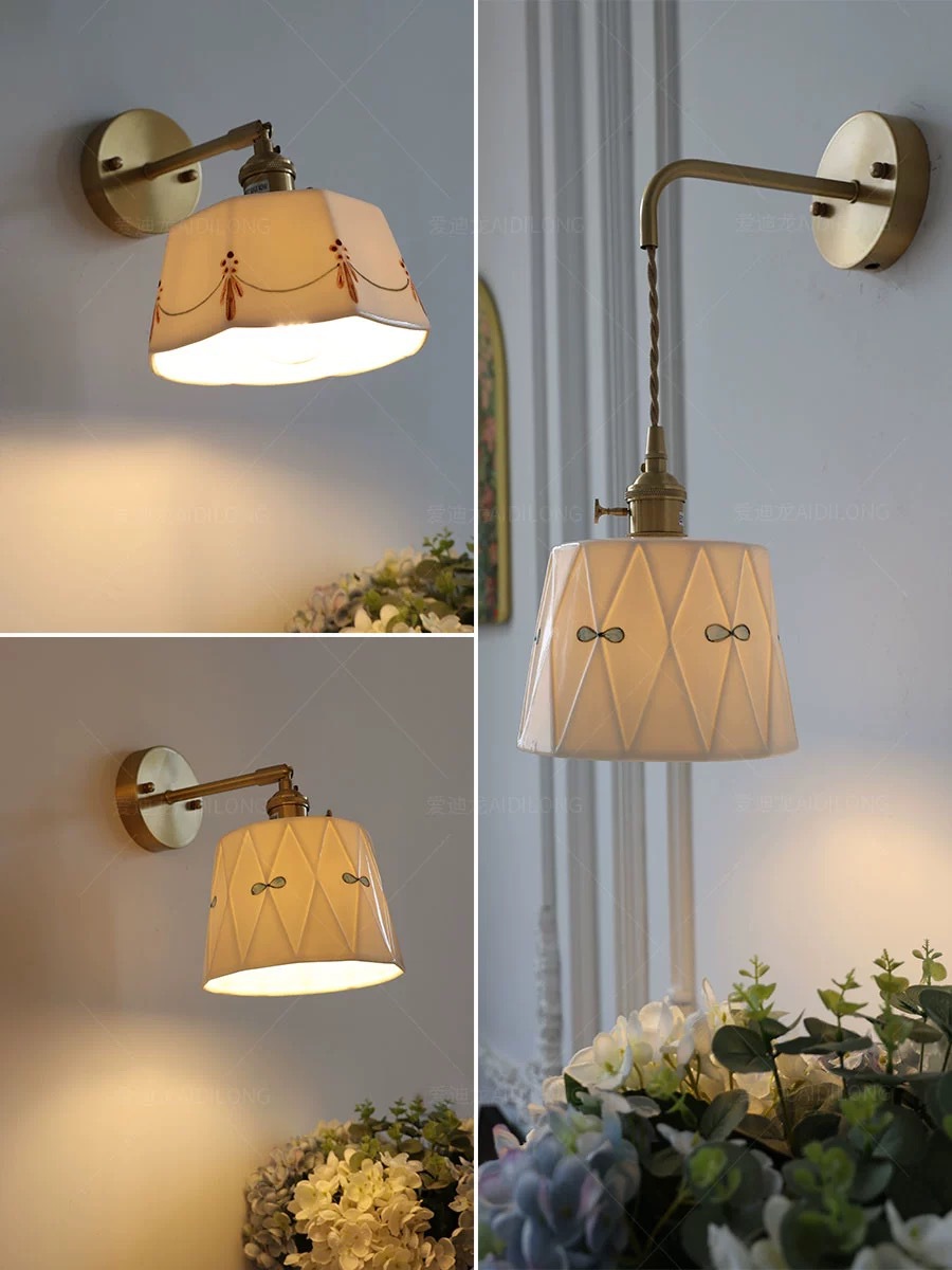신중국식 선(禪)풍 세라믹 벽등 침실 침대 옆 복도용 끈 스위치 포함 배경벽 조명 선(禪)풍 조명