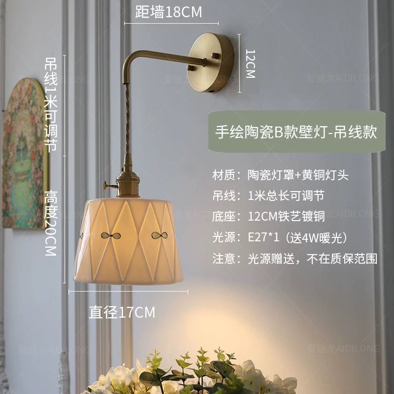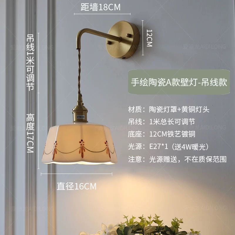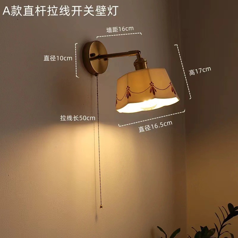 신중국식 선(禪)풍 세라믹 벽등 침실 침대 옆 복도용 끈 스위치 포함 배경벽 조명 선(禪)풍 조명스토어 가기