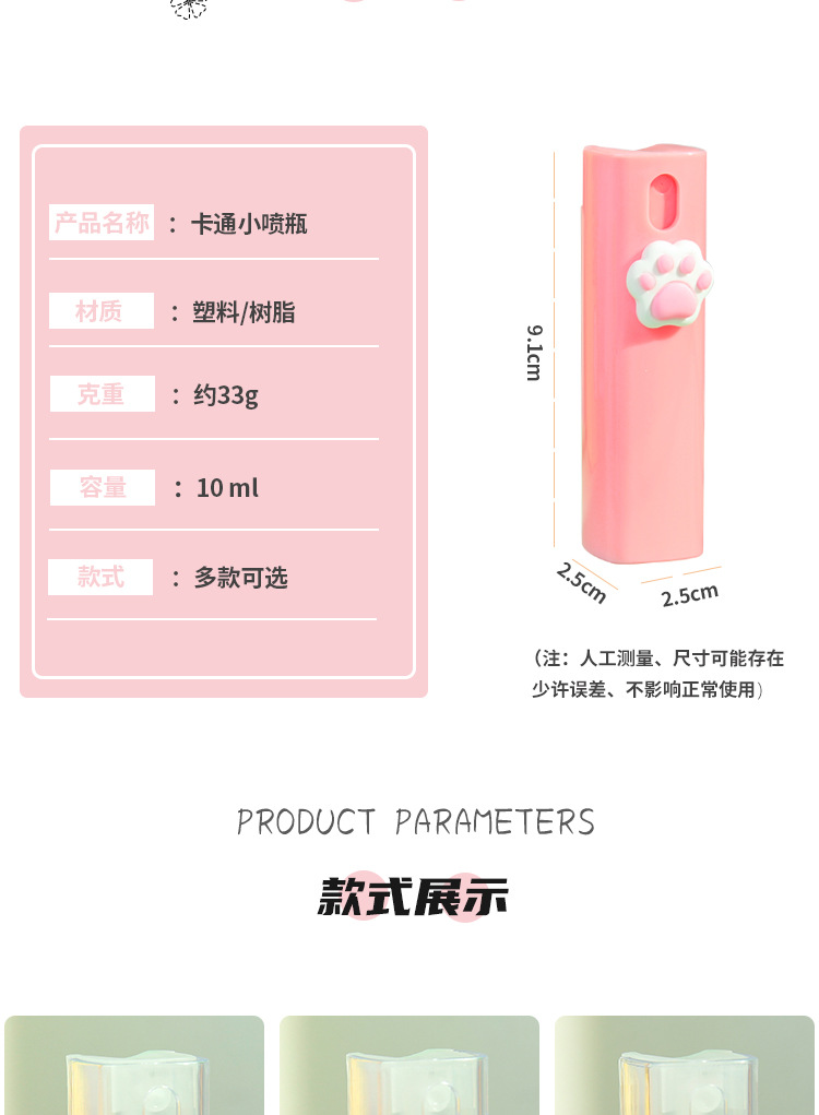학생 기숙사 홈 토너 물 보충 병 알코올 소독 스프레이 캔 작은 스프레이 병 귀여운 만화 스프레이 병