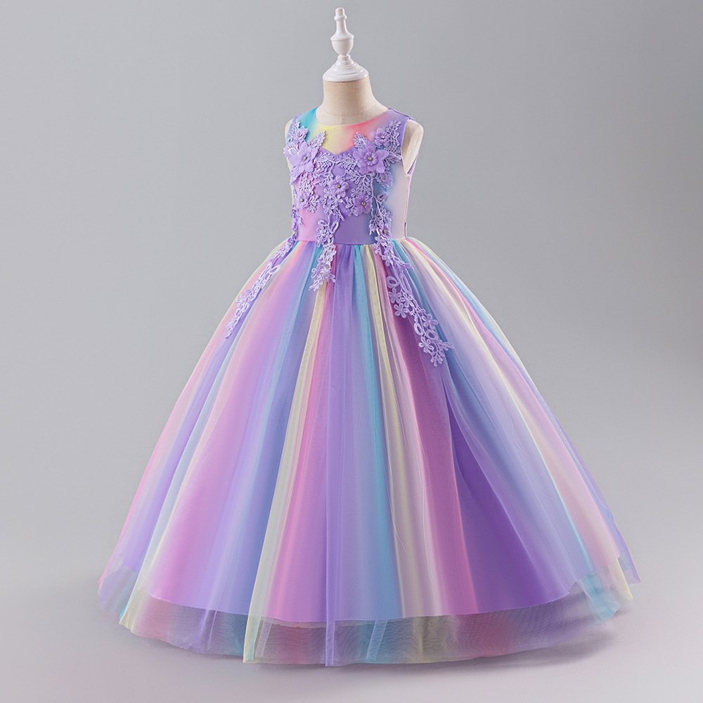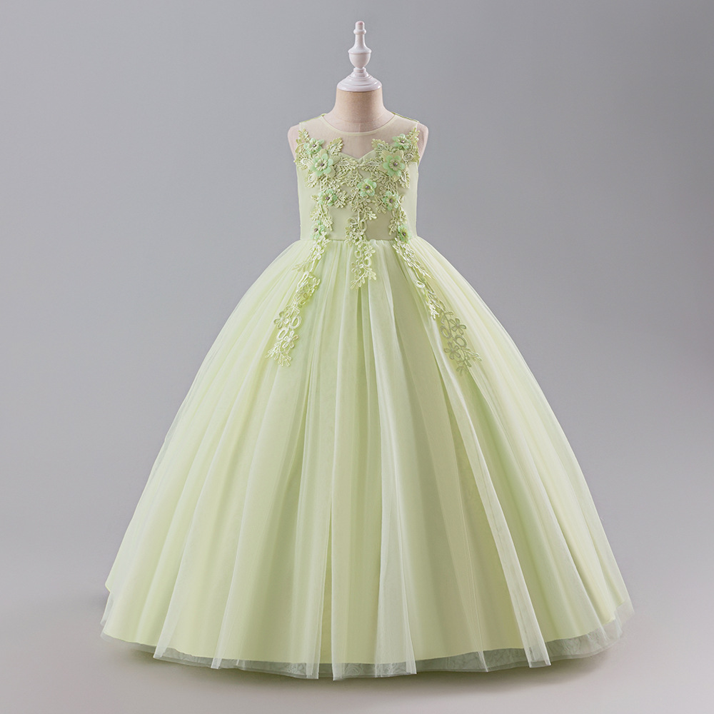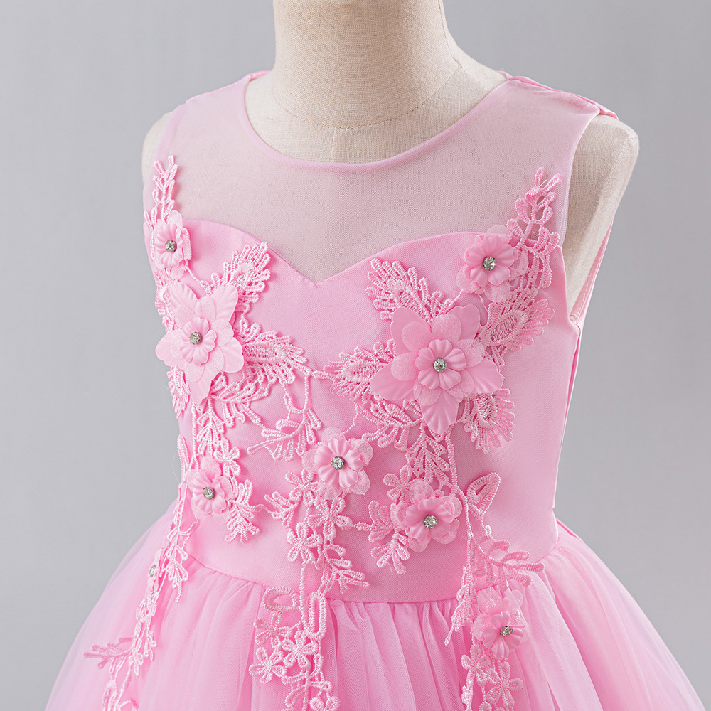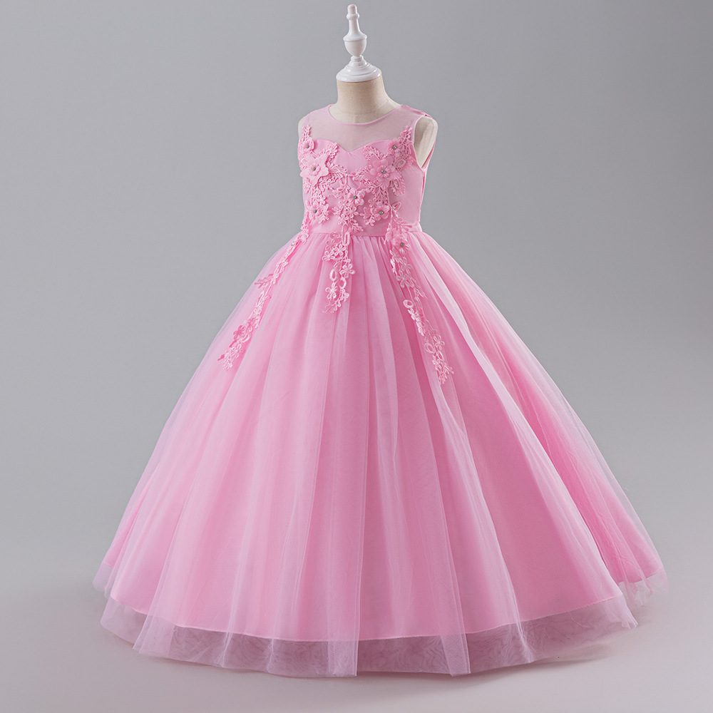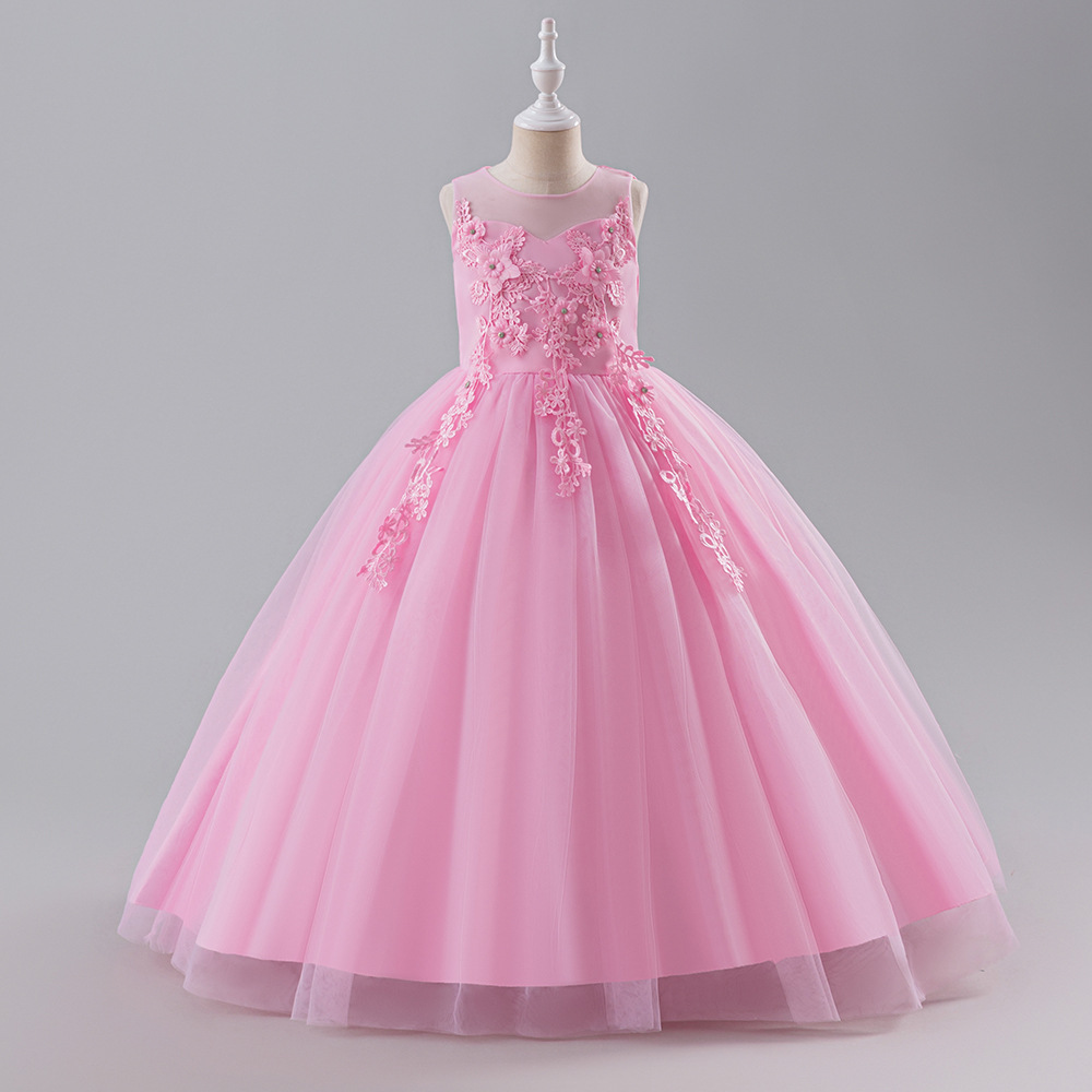 여아 드레스 어린이 공주 드레스 퍼프 망사 드레스 꽃 소녀 생일 축제 공연 해외 소녀 드레스