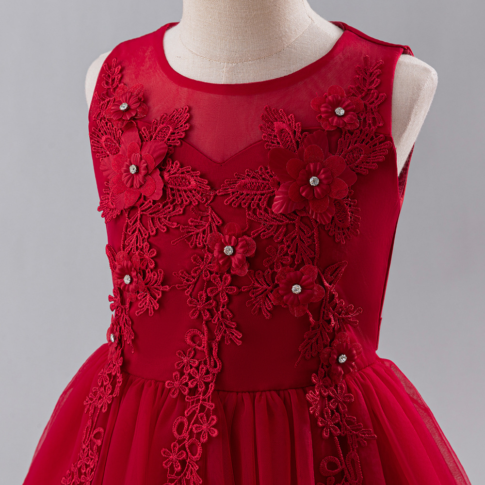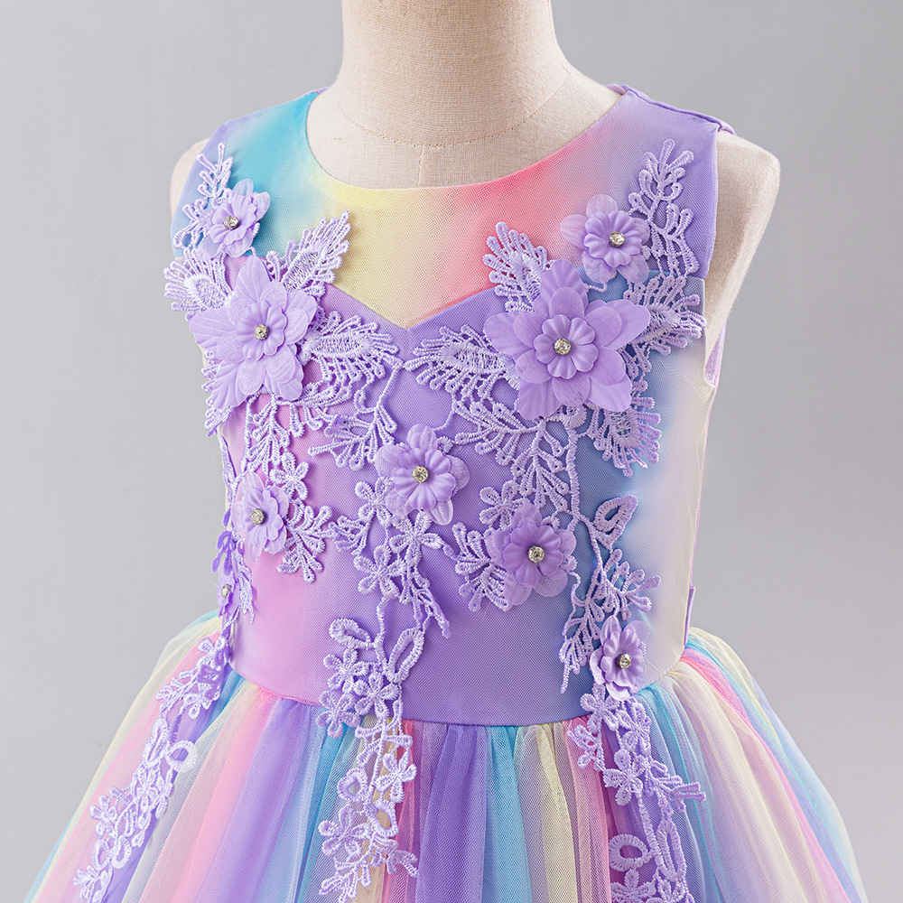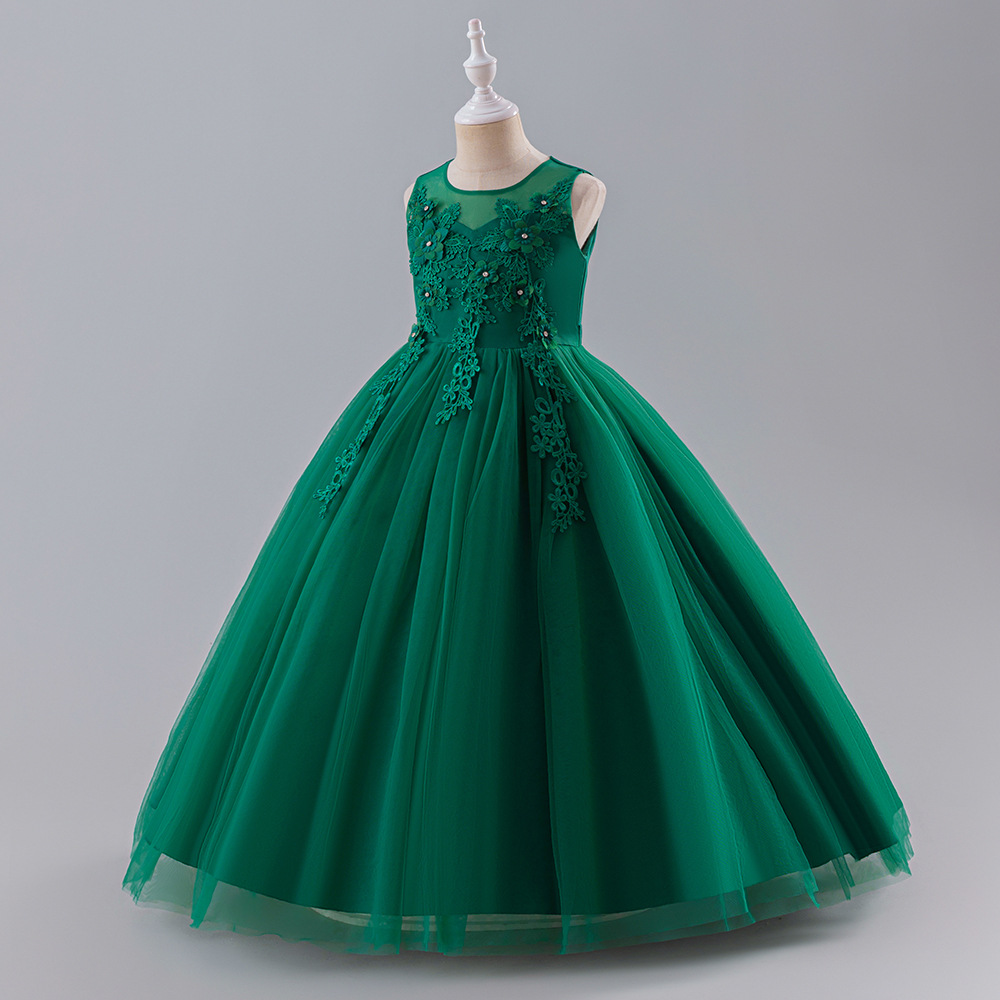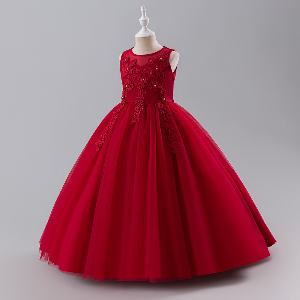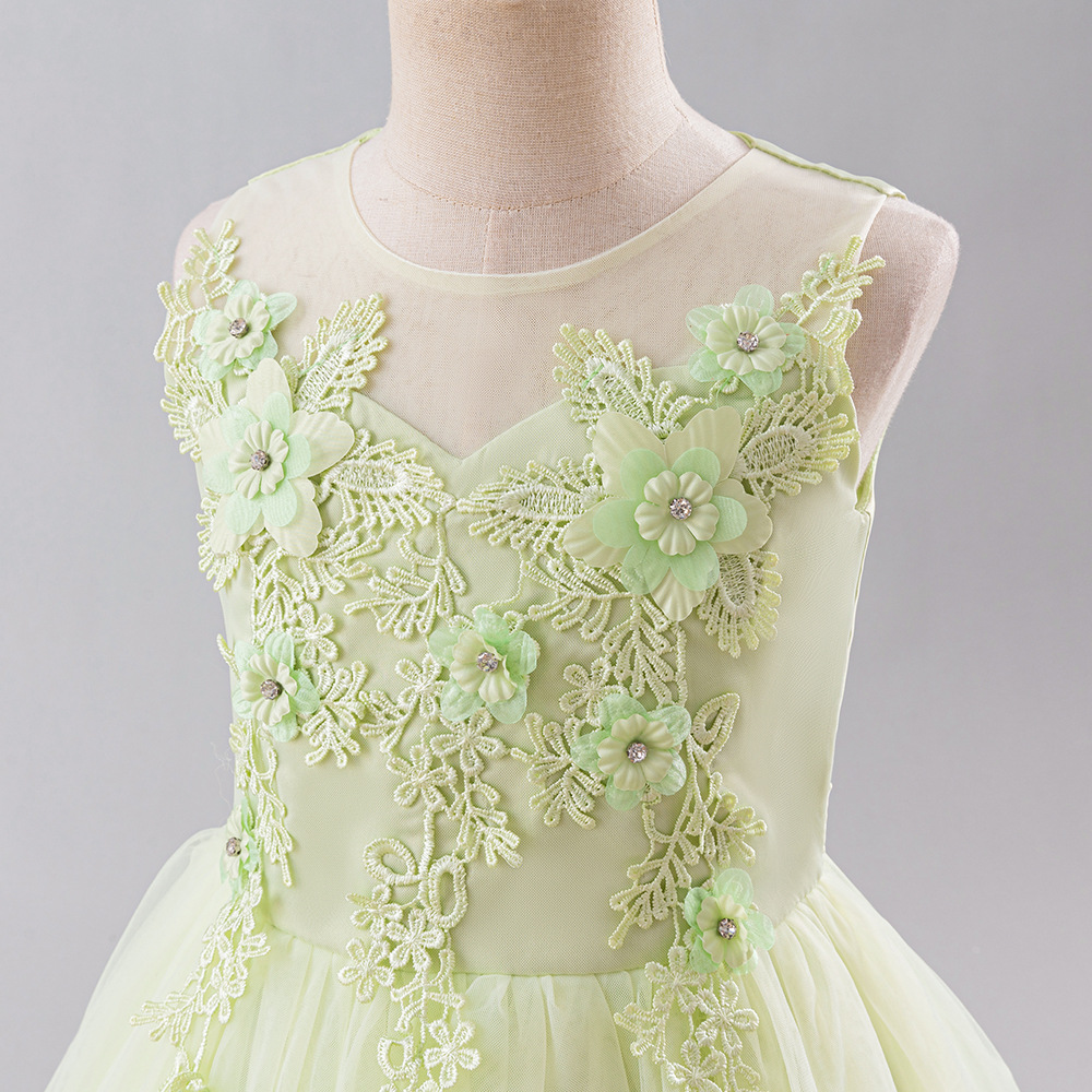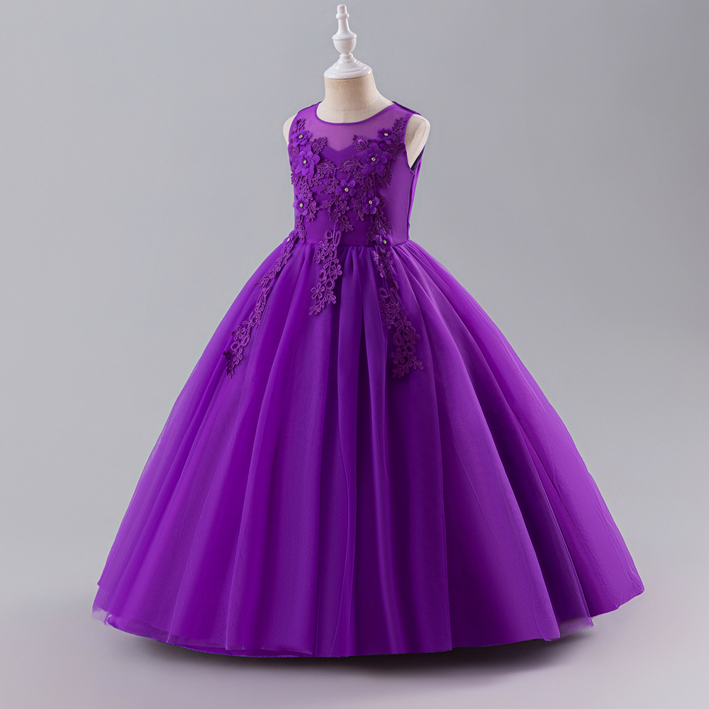 여아 드레스 어린이 공주 드레스 퍼프 망사 드레스 꽃 소녀 생일 축제 공연 해외 소녀 드레스