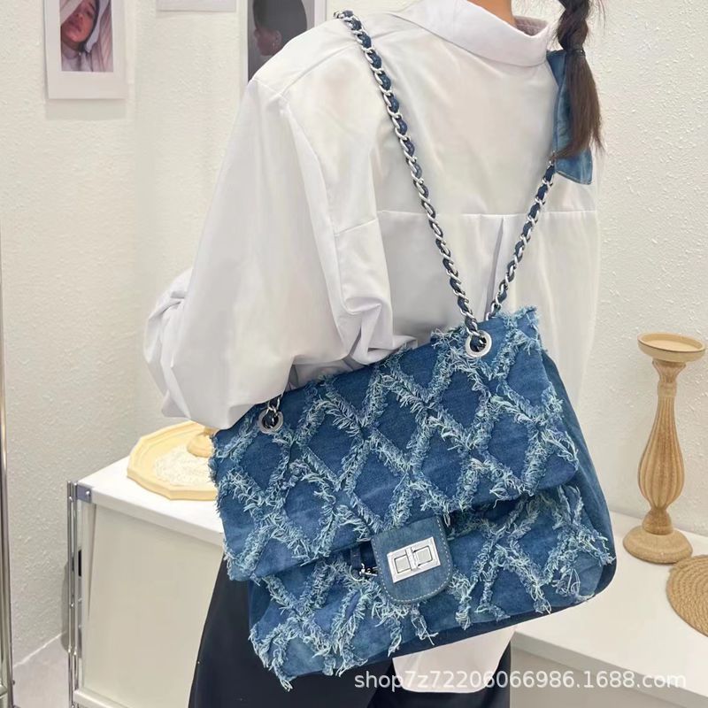 공장 아울렛 한국 패션 여성 가방 맞춤형 데님 격자 무늬 어깨 크로스 바디 백 여성 쇼핑 메신저 백스토어 가기