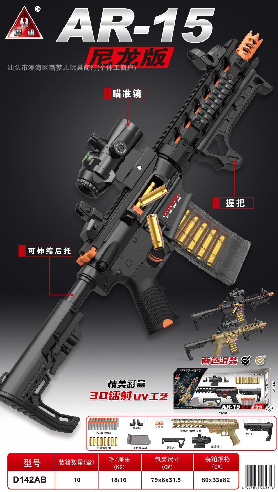 • D142AB [나일론 플레이트] AR-15 수동 소프트탄총 [2색상 랜덤]