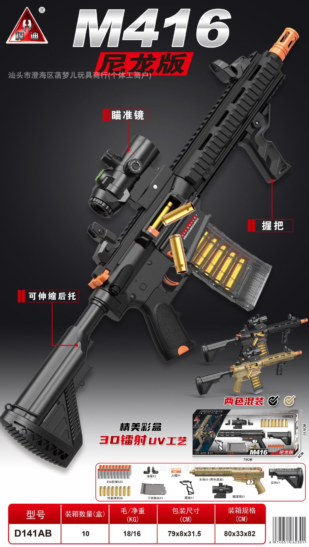• D141AB [나일론판] M416 수동 소프트탄총 [2색상 랜덤]