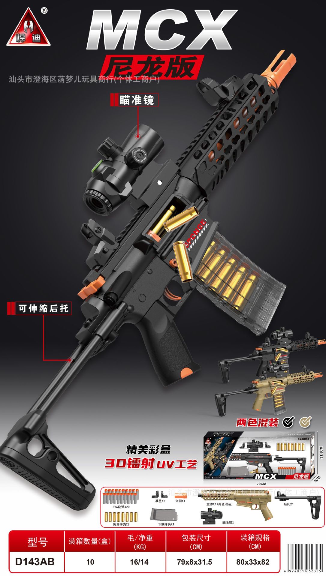 • D143AB [나일론판] MCX 수동 소프트탄총 [2색상 랜덤]