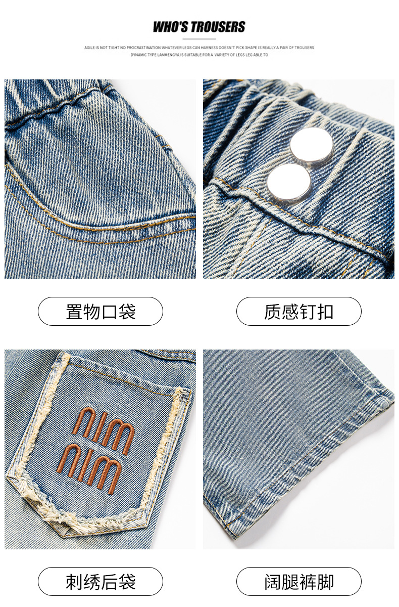 • Tongxin Beibei&815 백 포켓 자수 와이드 팬츠 (봄, 가을)