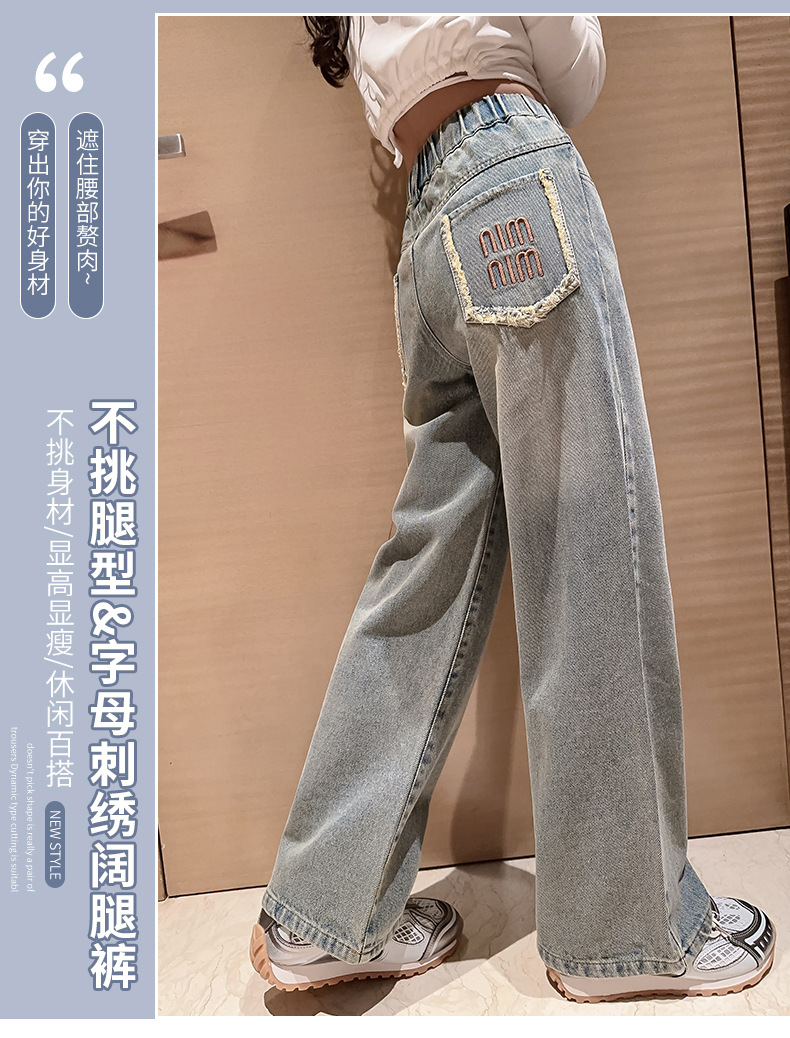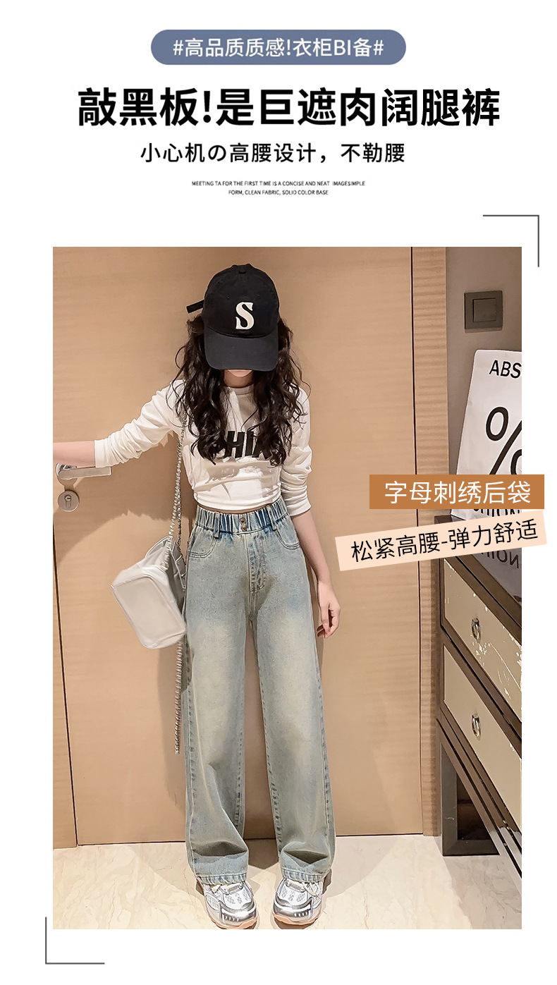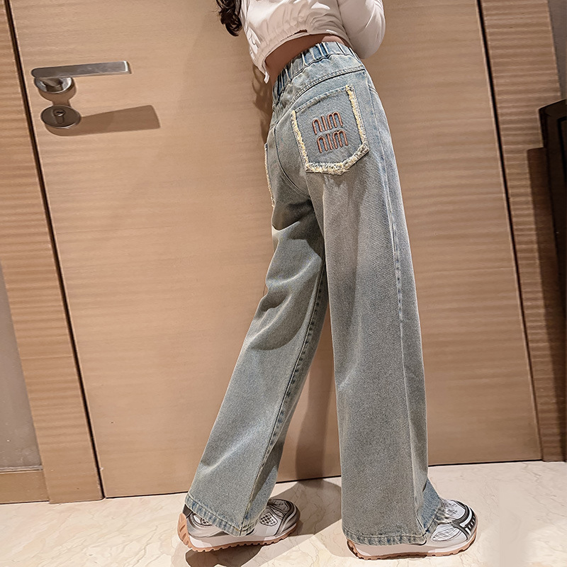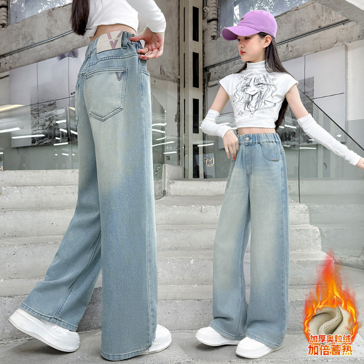여아 바지 봄 가을 루즈핏 청바지 아동 여아 가을 겨울 기모 스트레이트 와이드 팬츠 세련된 롱 팬츠