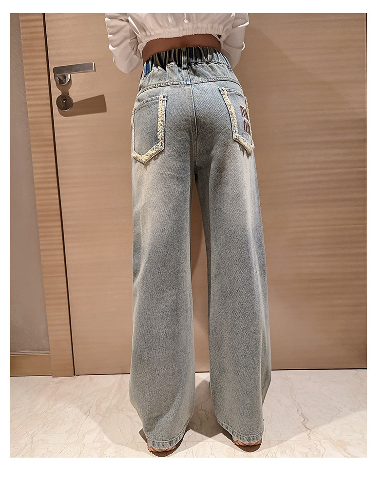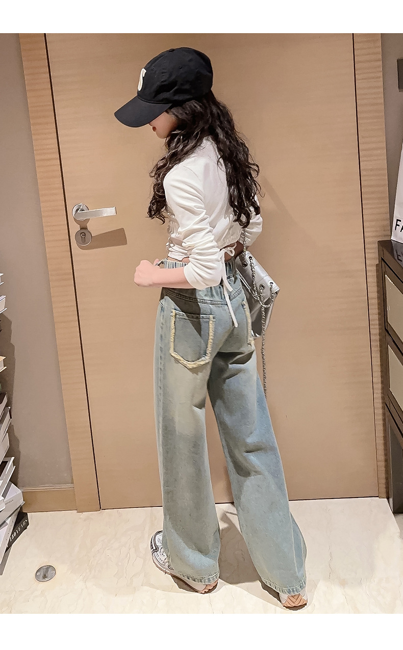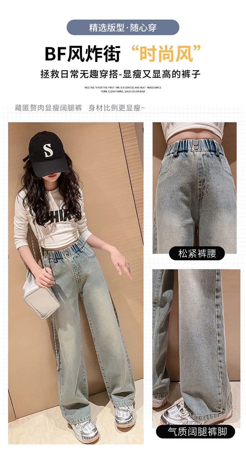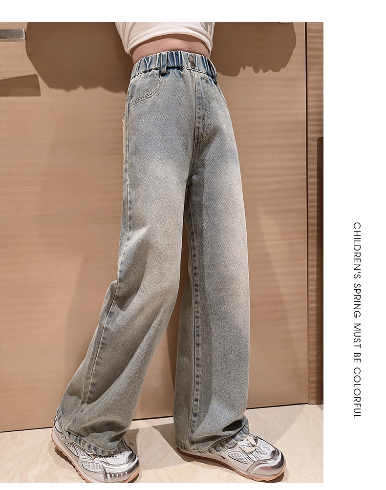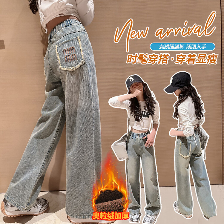 여아 바지 봄 가을 루즈핏 청바지 아동 여아 가을 겨울 기모 스트레이트 와이드 팬츠 세련된 롱 팬츠스토어 가기