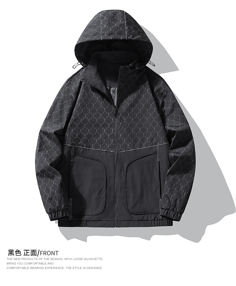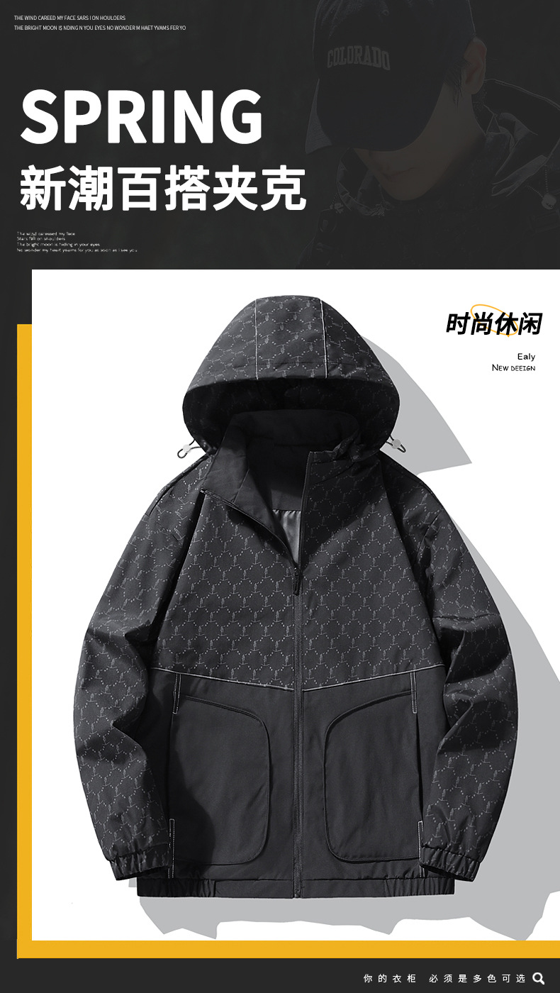 봄과 가을 2024 새로운 남성 자켓 후드 인쇄 스포츠 핸섬 느슨한 청소년 캐주얼 코트 재킷