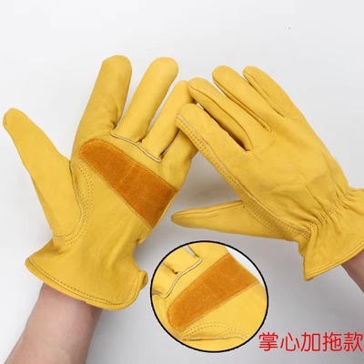 헤드 레이어 소 가죽 전기 용접 장갑 소 가죽 짧은 용접기 용접 부드러운 가죽 장갑 부드러운 안티 scald 단열 고온 저항스토어 가기