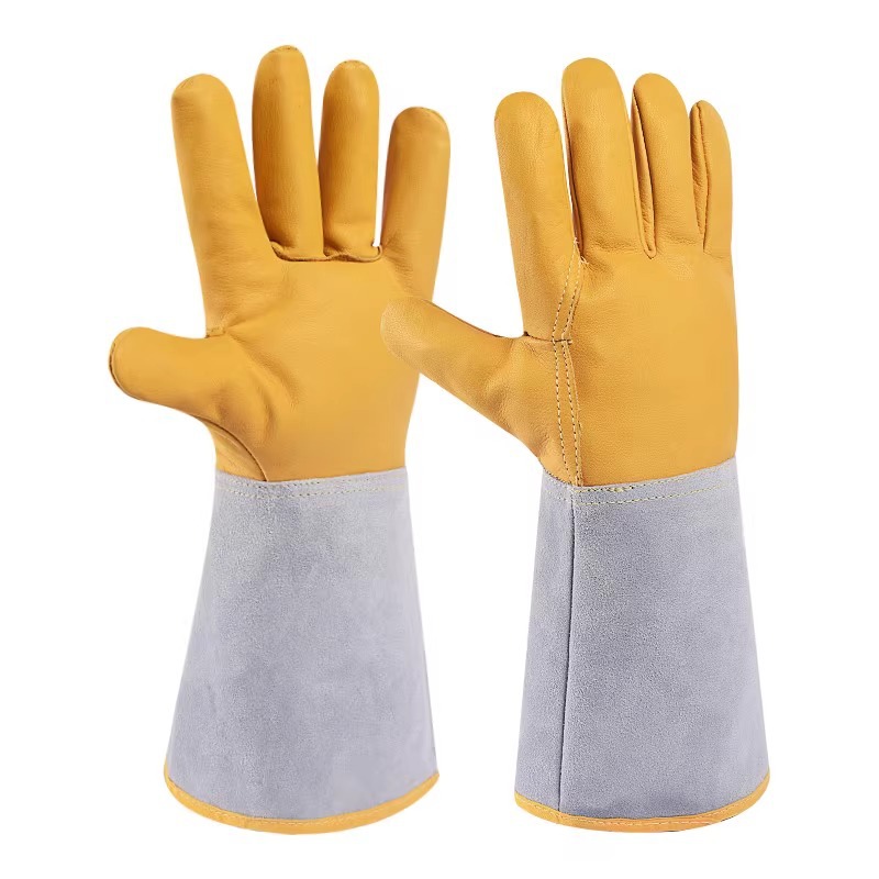 헤드 레이어 소 가죽 전기 용접 장갑 소 가죽 짧은 용접기 용접 부드러운 가죽 장갑 부드러운 안티 scald 단열 고온 저항
