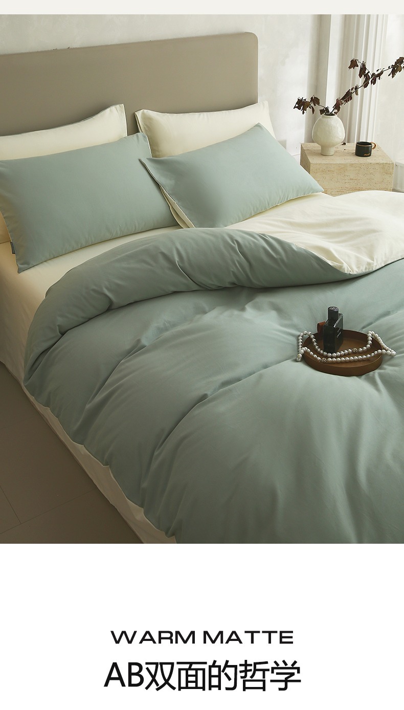 A급 100수 장섬유 순면 단색 기모 4종 세트 두꺼운 기모 가을 겨울 침구 세트 침대 시트 이불 커버