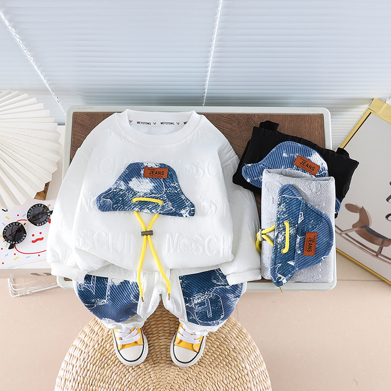 남학생의 새로운 봄과 가을 캐주얼 스타일 모자 그린 스트링 소년과 아기를위한 땀 투피스 세트 잘 생긴 어린 아이들의 가을 옷 세트
