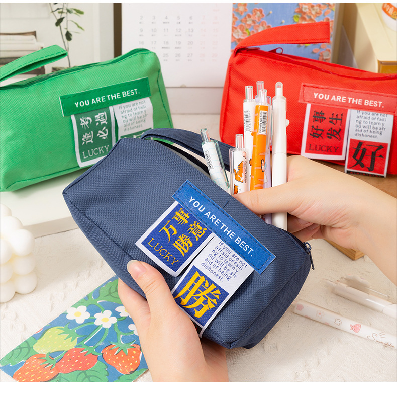 미래 대용량 옥스포드 천 연필 가방 학생 영감 텍스트 더블 레이어 스토리지 연필 가방 학습 문구 가방스토어 가기