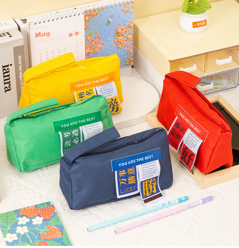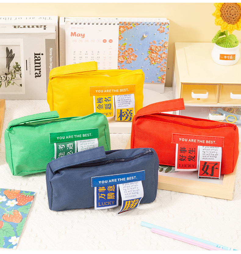 미래 대용량 옥스포드 천 연필 가방 학생 영감 텍스트 더블 레이어 스토리지 연필 가방 학습 문구 가방