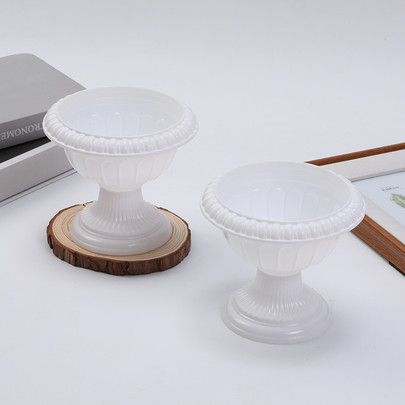 국경 간 플라스틱 꽃 냄비 유럽 스타일 로마 기둥 냄비 대형 구경 꽃 냄비 창조적 인 높은 발 수경 살수 녹색 장미 꽃 냄비