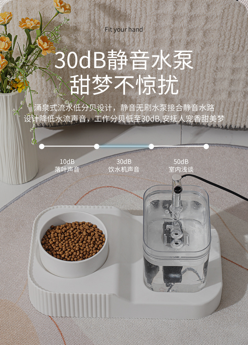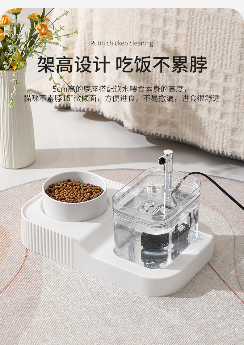 • 애완 동물 흰색 커버 실버 작은 크리스탈 먹고 마시는 올인원 기계