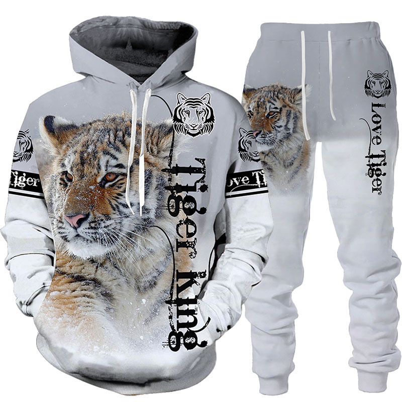 2024 국경을 넘는 새로운 호랑이 3D 인쇄 후드 조끼 세트 봄과 가을 유럽과 미국 남성 조끼 여성 유럽과 미국의 대외 무역스토어 가기