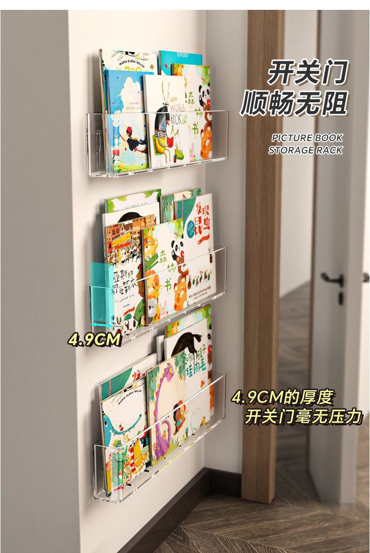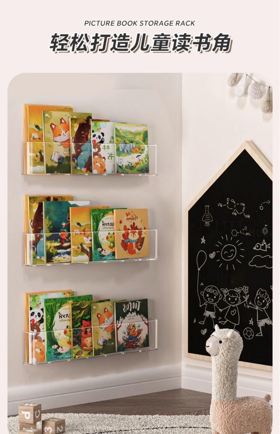 벽 책장 벽에 장착 된 어린이 문 멀리 프로모션 매거진 펀치 무료 투명 아크릴 책 벽 보관