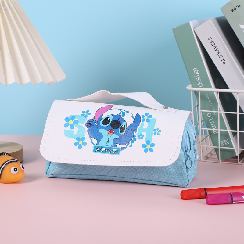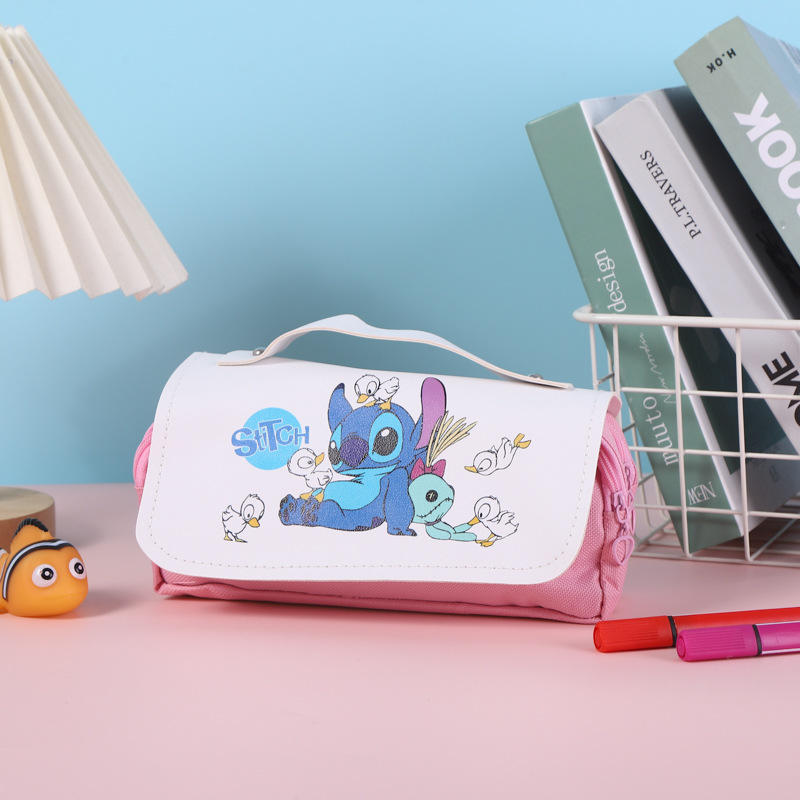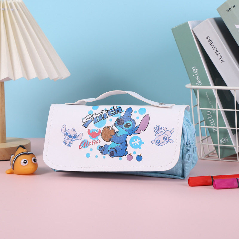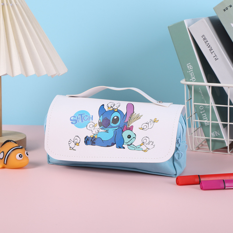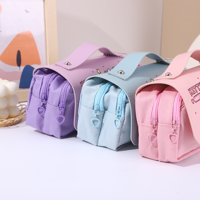 국경 스티퍼 연필 케이스 더블 레이어 대용량 휴대용 방수 캔버스 학생 문구 케이스 지갑 화장품 가방 도매스토어 가기