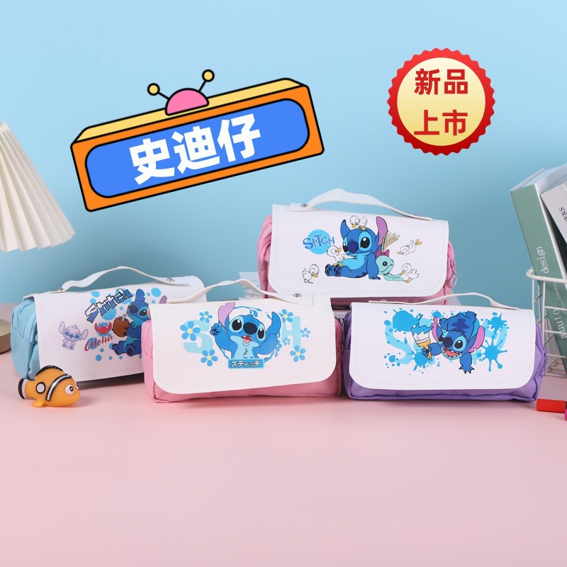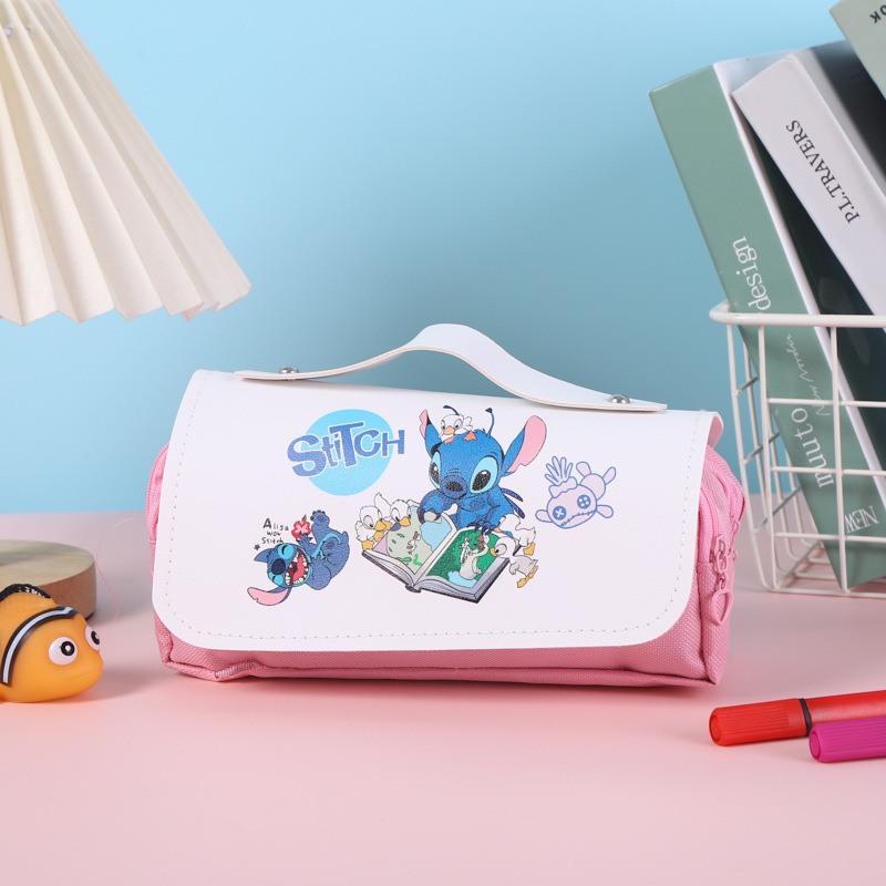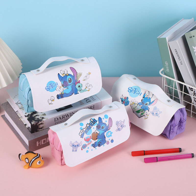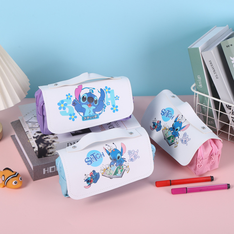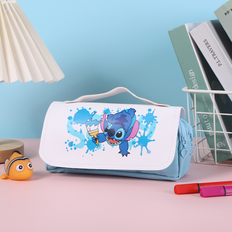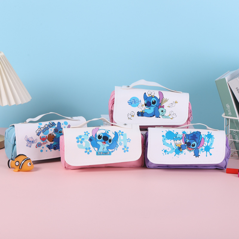 국경 스티퍼 연필 케이스 더블 레이어 대용량 휴대용 방수 캔버스 학생 문구 케이스 지갑 화장품 가방 도매스토어 가기