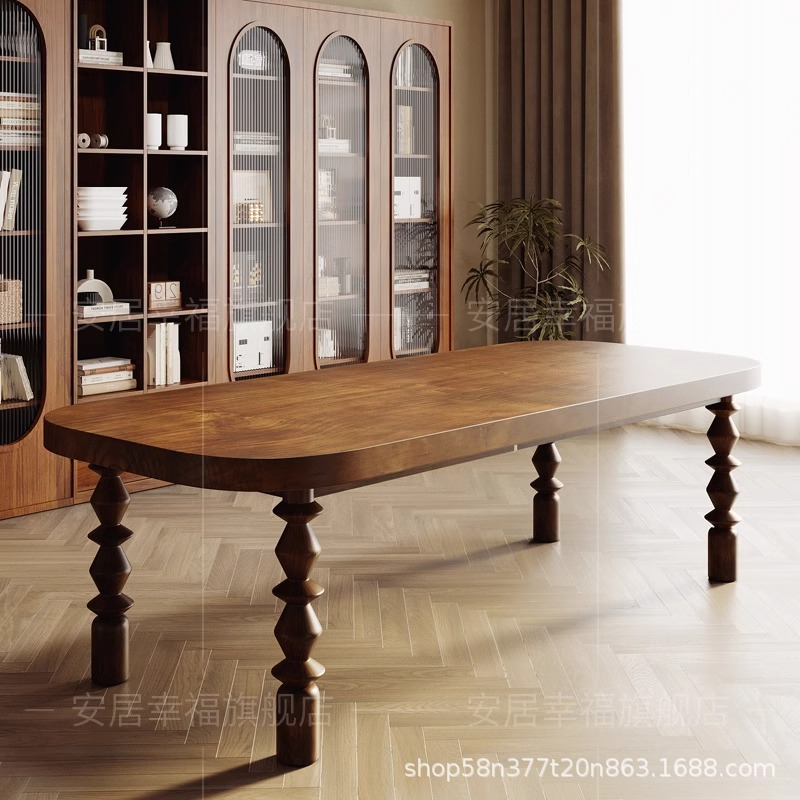 타원형 단단한 나무 회의 테이블 산업 스타일 사무실 긴 테이블 큰 협상 테이블과 의자 조합 로그 긴 테이블스토어 가기