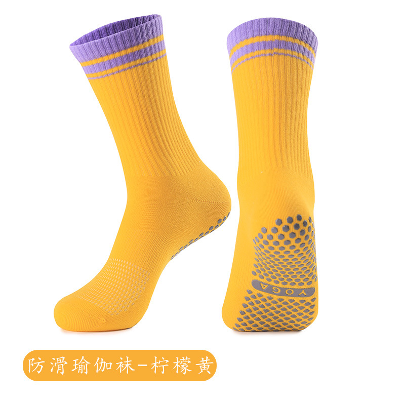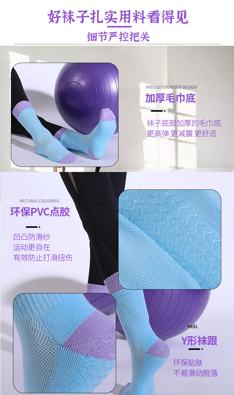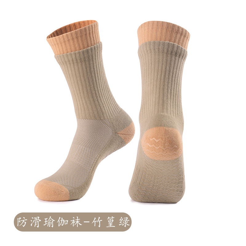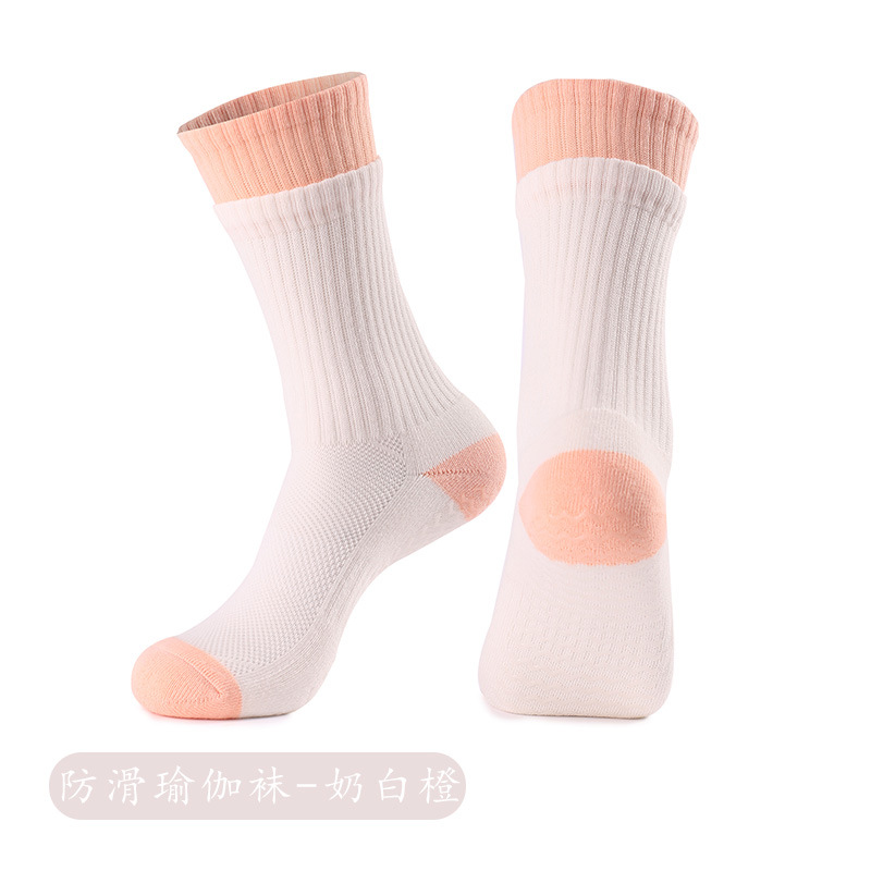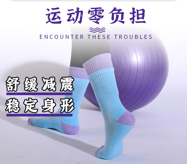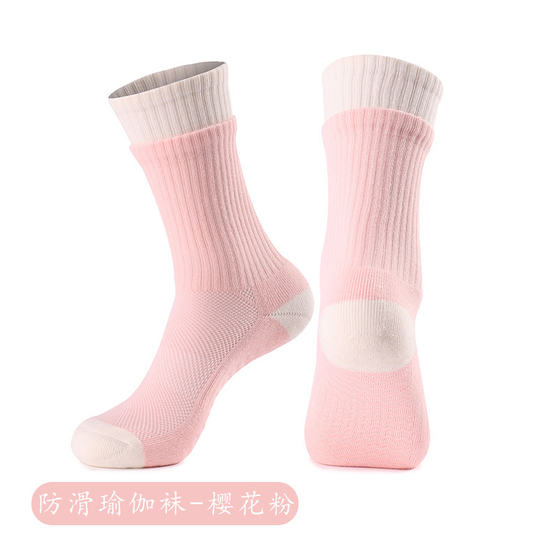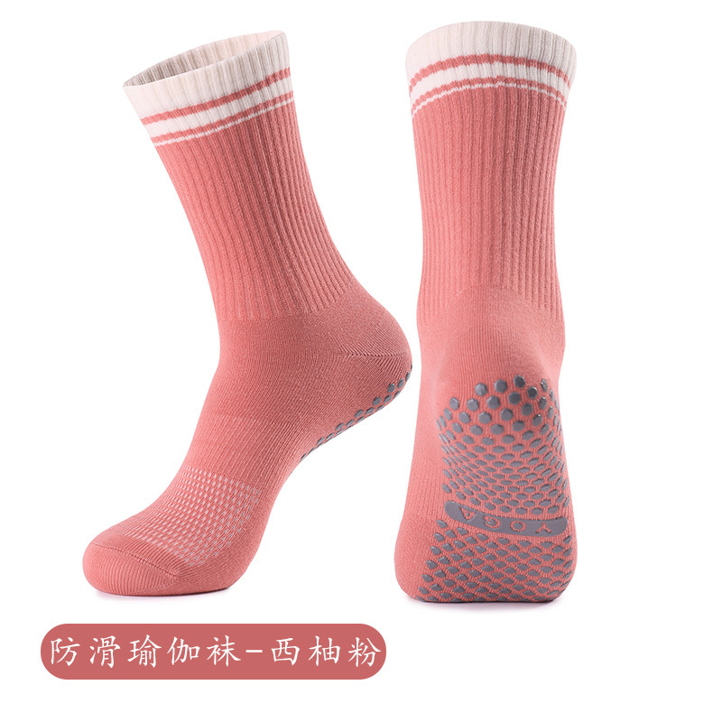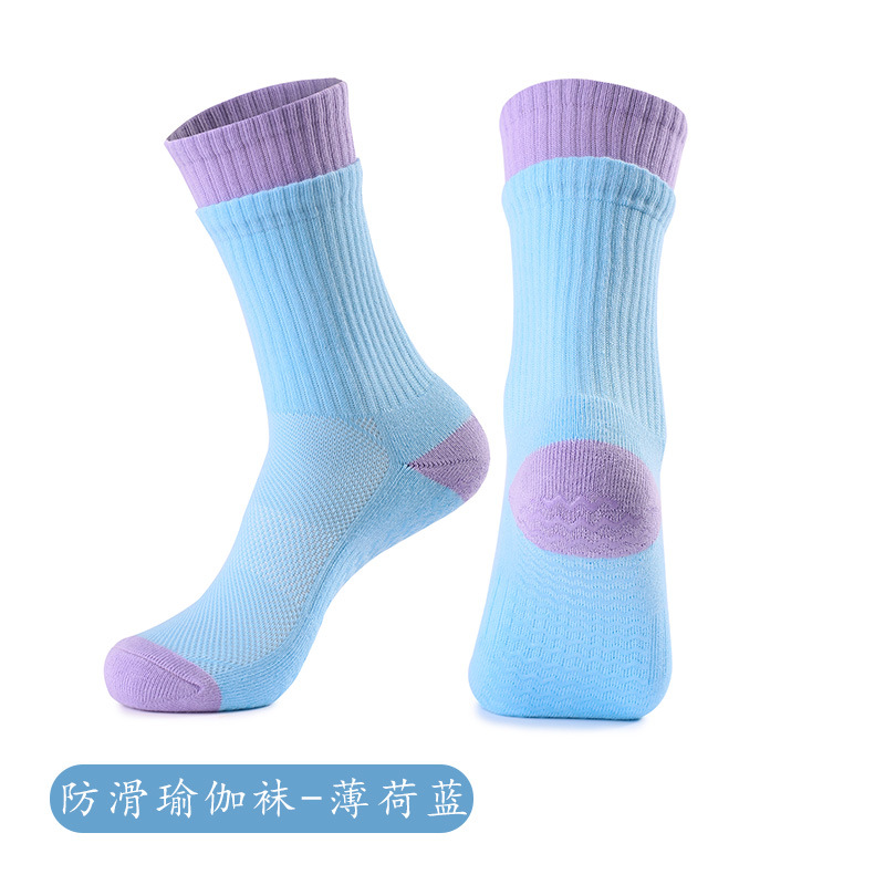 성인 통기성 중간 튜브 스포츠 양말 여성의 두꺼운 수건 바닥 접착제 분배 미끄럼 방지 양말 실내 필라테스 요가 양말스토어 가기