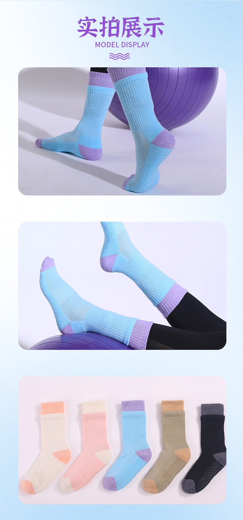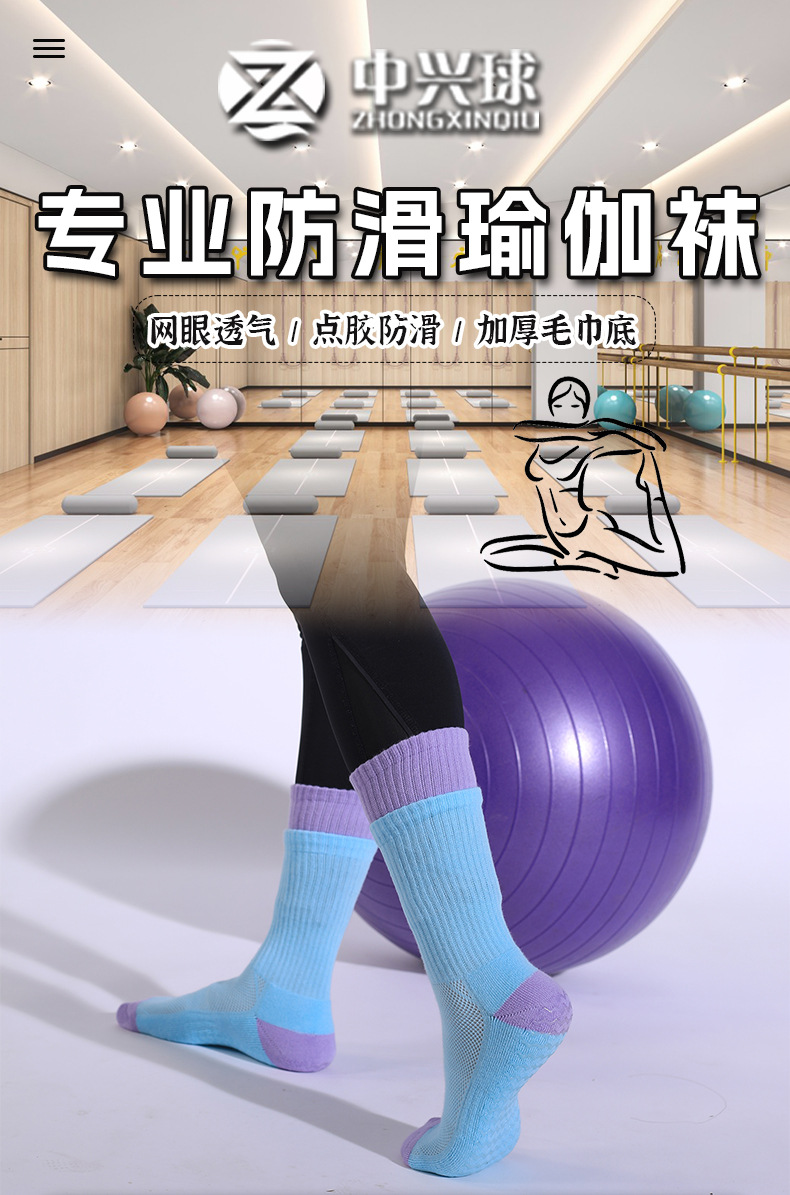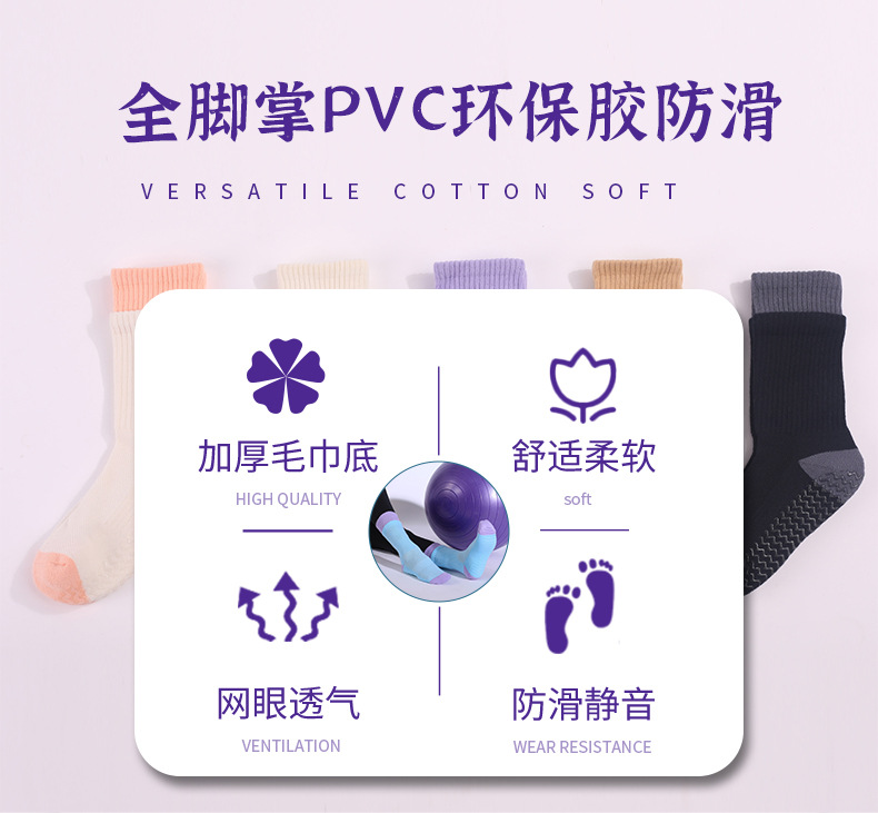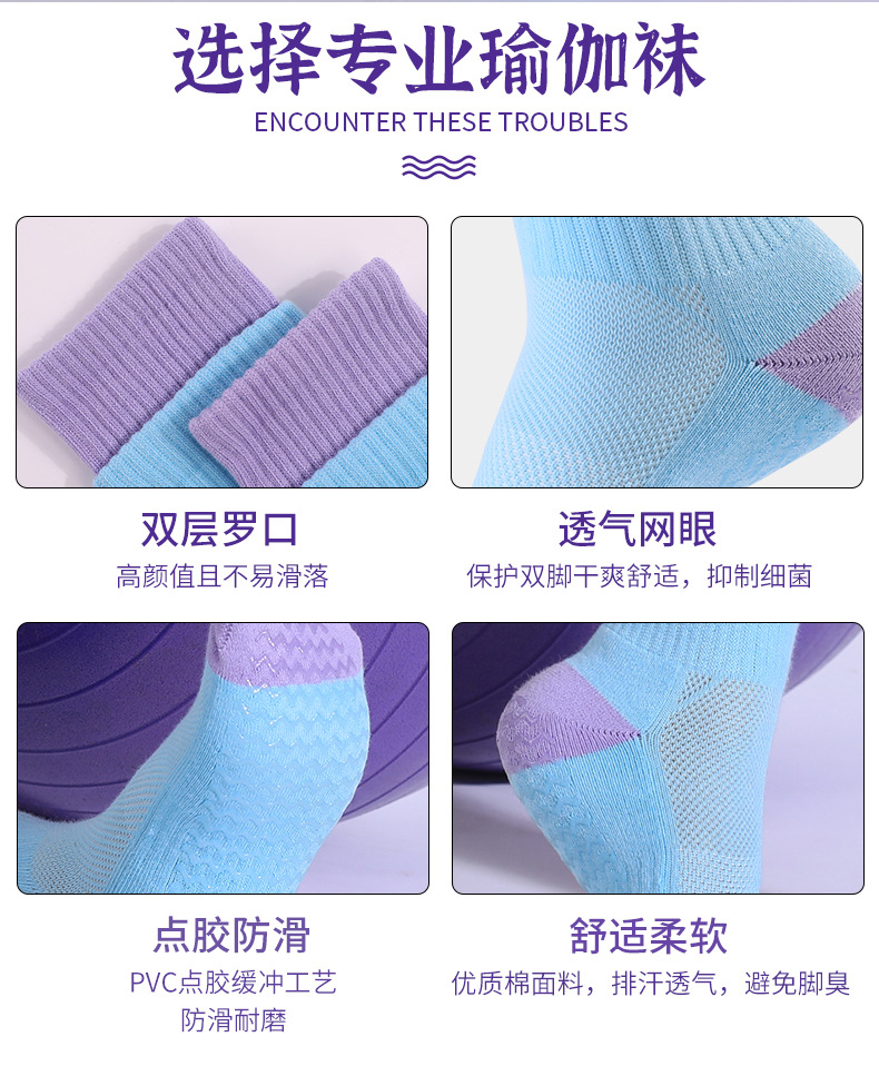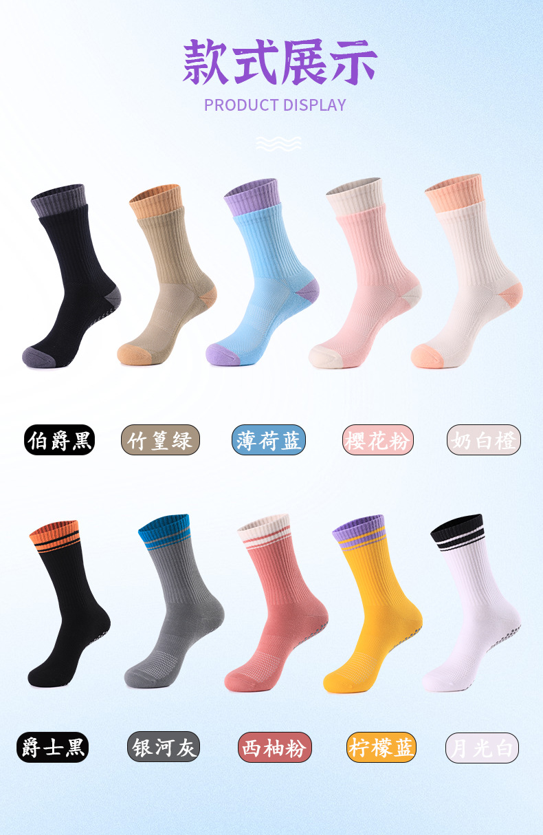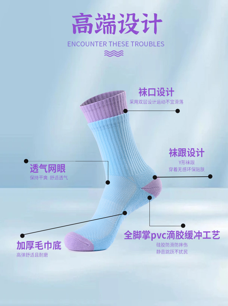 성인 통기성 중간 튜브 스포츠 양말 여성의 두꺼운 수건 바닥 접착제 분배 미끄럼 방지 양말 실내 필라테스 요가 양말스토어 가기