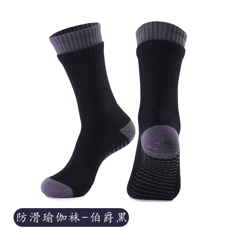 성인 통기성 중간 튜브 스포츠 양말 여성의 두꺼운 수건 바닥 접착제 분배 미끄럼 방지 양말 실내 필라테스 요가 양말