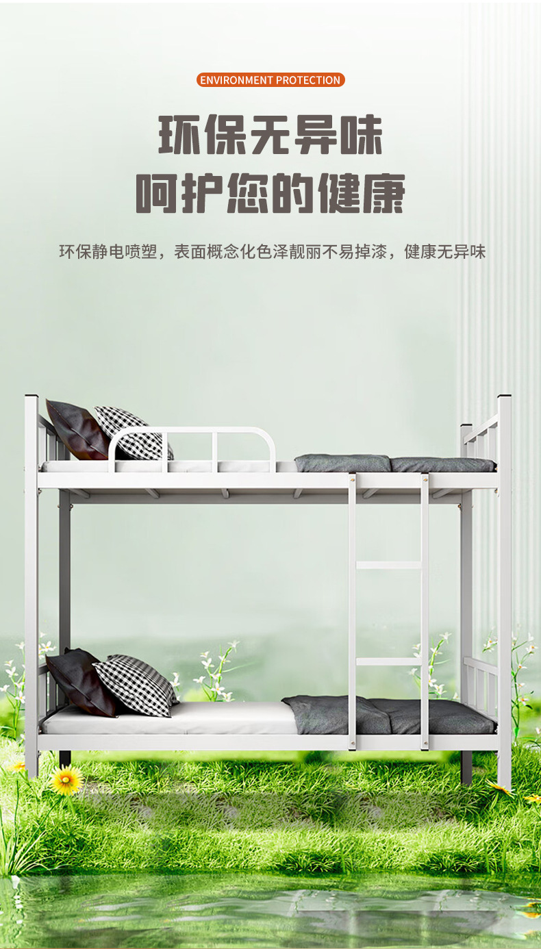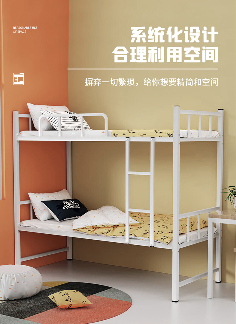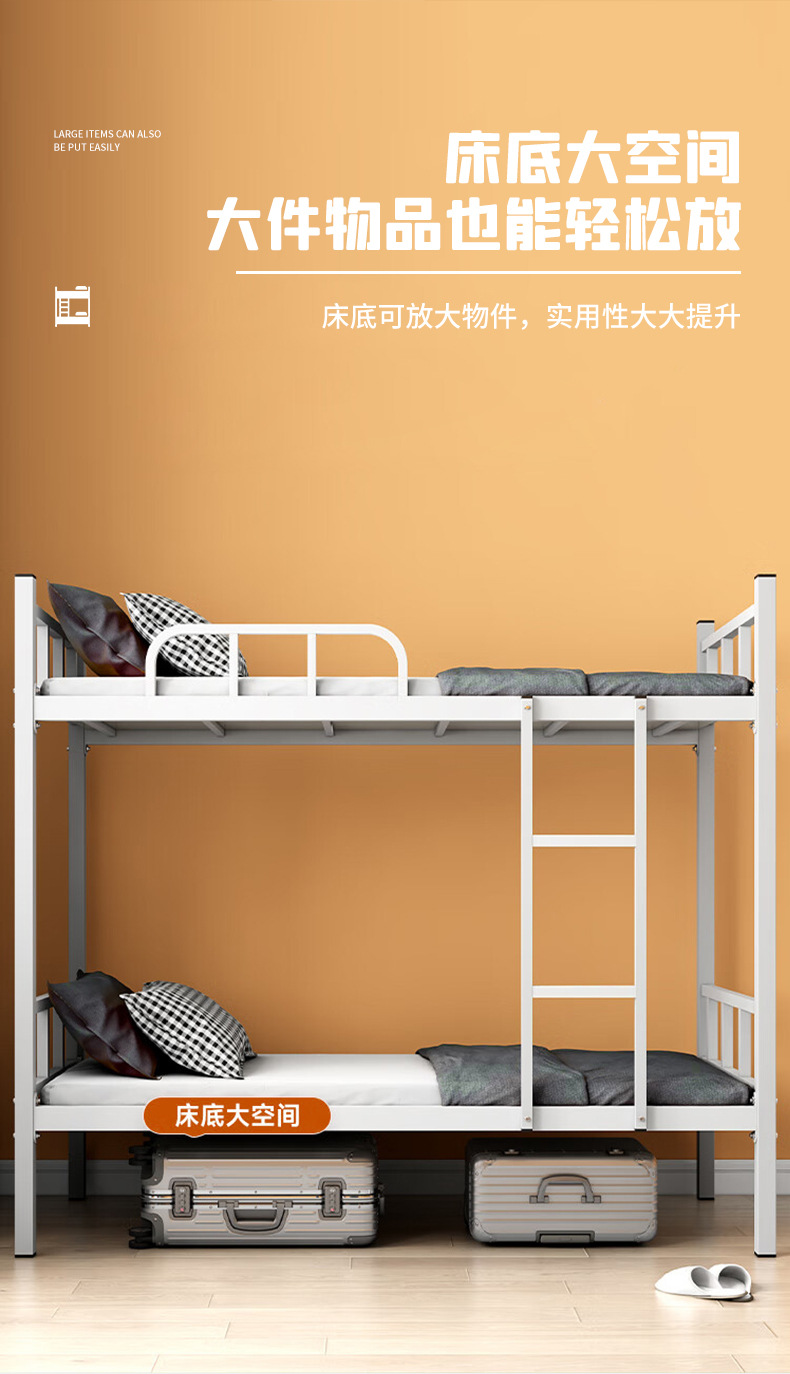 상단 및 하단 이층 철제 프레임 침대 높이 및 낮은 침대 침대 침대 침대 학교 기숙사 아파트 침대 사각형 파이프 침대 작업 침대 철스토어 가기