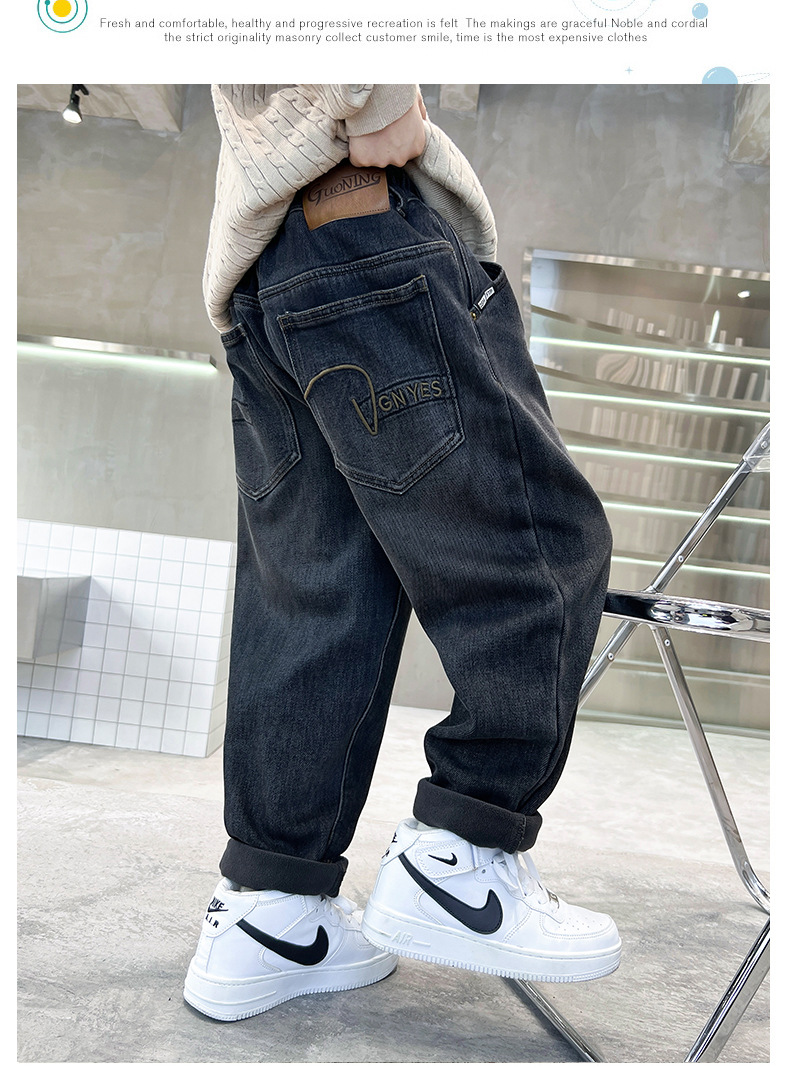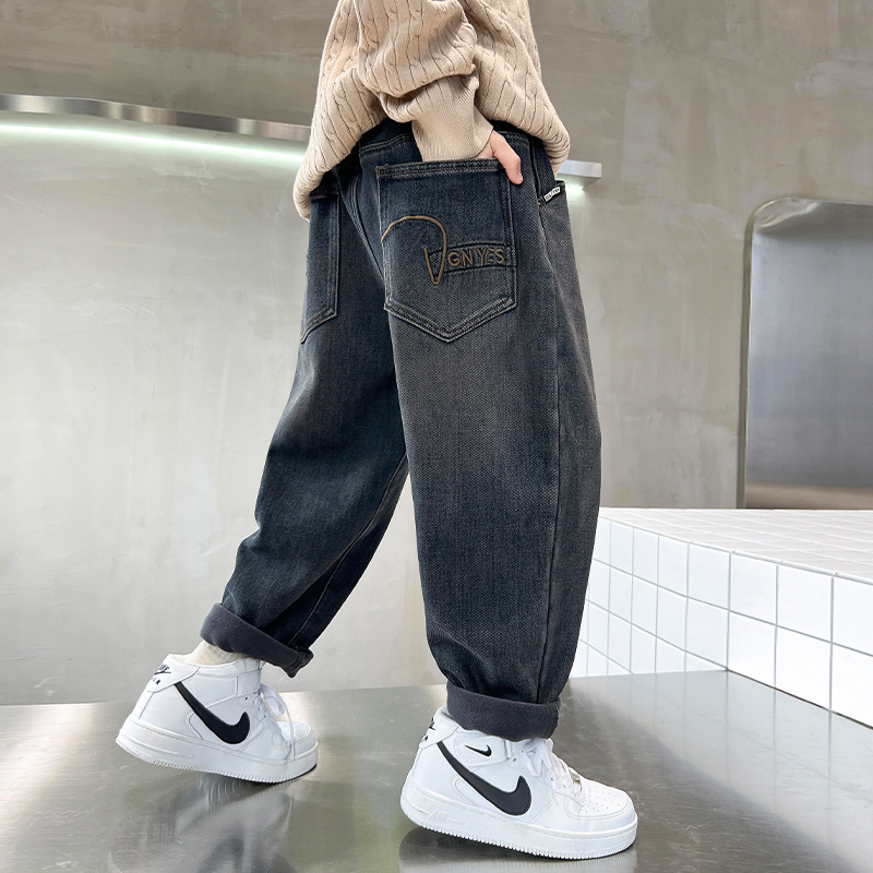 어린이 소년 바지 봄과 가을 2024 새로운 봄 큰 어린이 봄 소년 기모 캐주얼 청바지스토어 가기