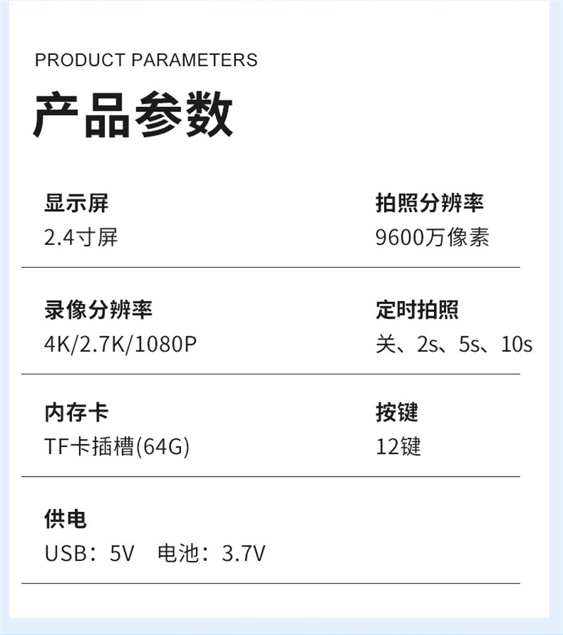 录像像素:4K、2.7K、1920*1080 、1280*720