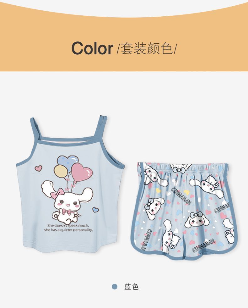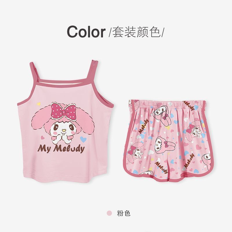 2024 여름 새 여아 잠옷 세트 귀여운 만화 쿨로 미 전체 인쇄 아기 소녀 홈 옷 두 조각 세트