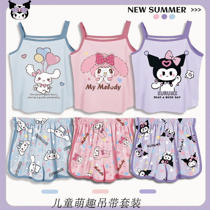 2024 여름 새 여아 잠옷 세트 귀여운 만화 쿨로 미 전체 인쇄 아기 소녀 홈 옷 두 조각 세트스토어 가기