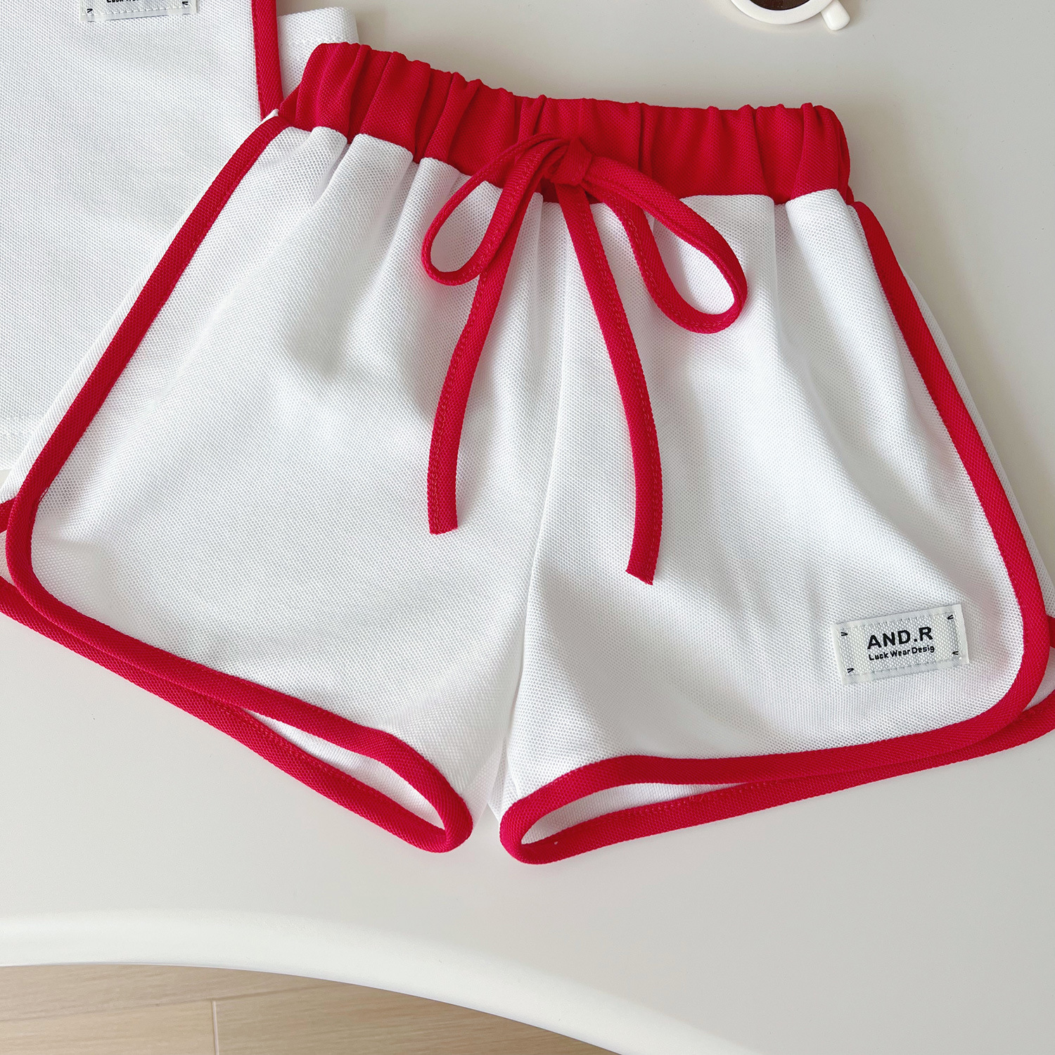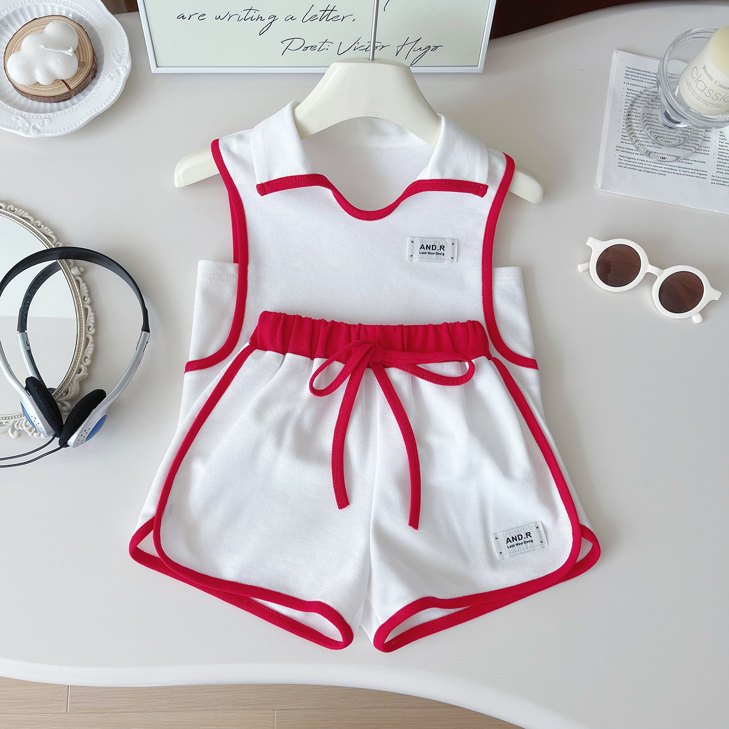 여자 세트 2024 여름 새로운 한국식 컬러 블록 조끼 세트 키즈 스포츠 투피스 세트