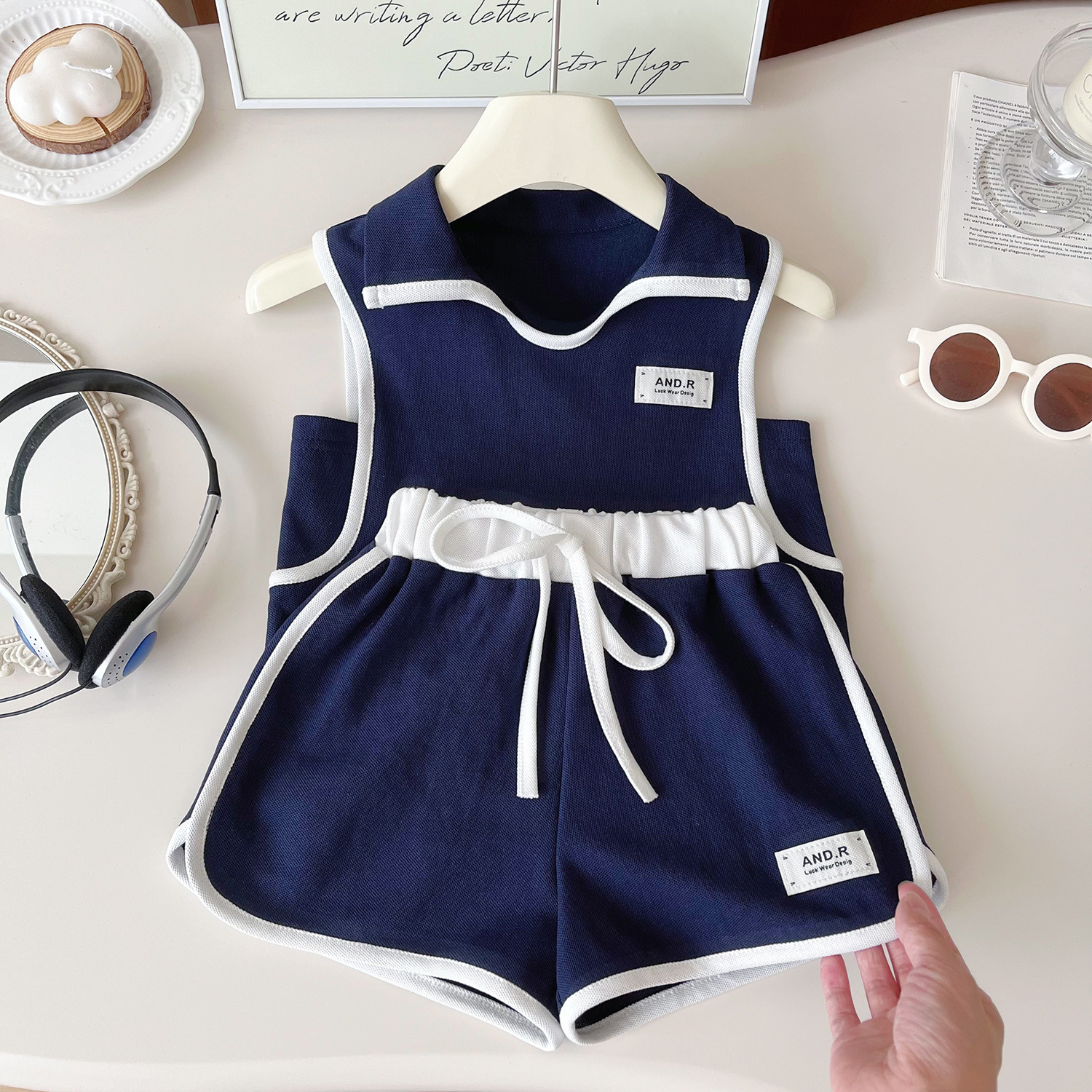 여자 세트 2024 여름 새로운 한국식 컬러 블록 조끼 세트 키즈 스포츠 투피스 세트스토어 가기