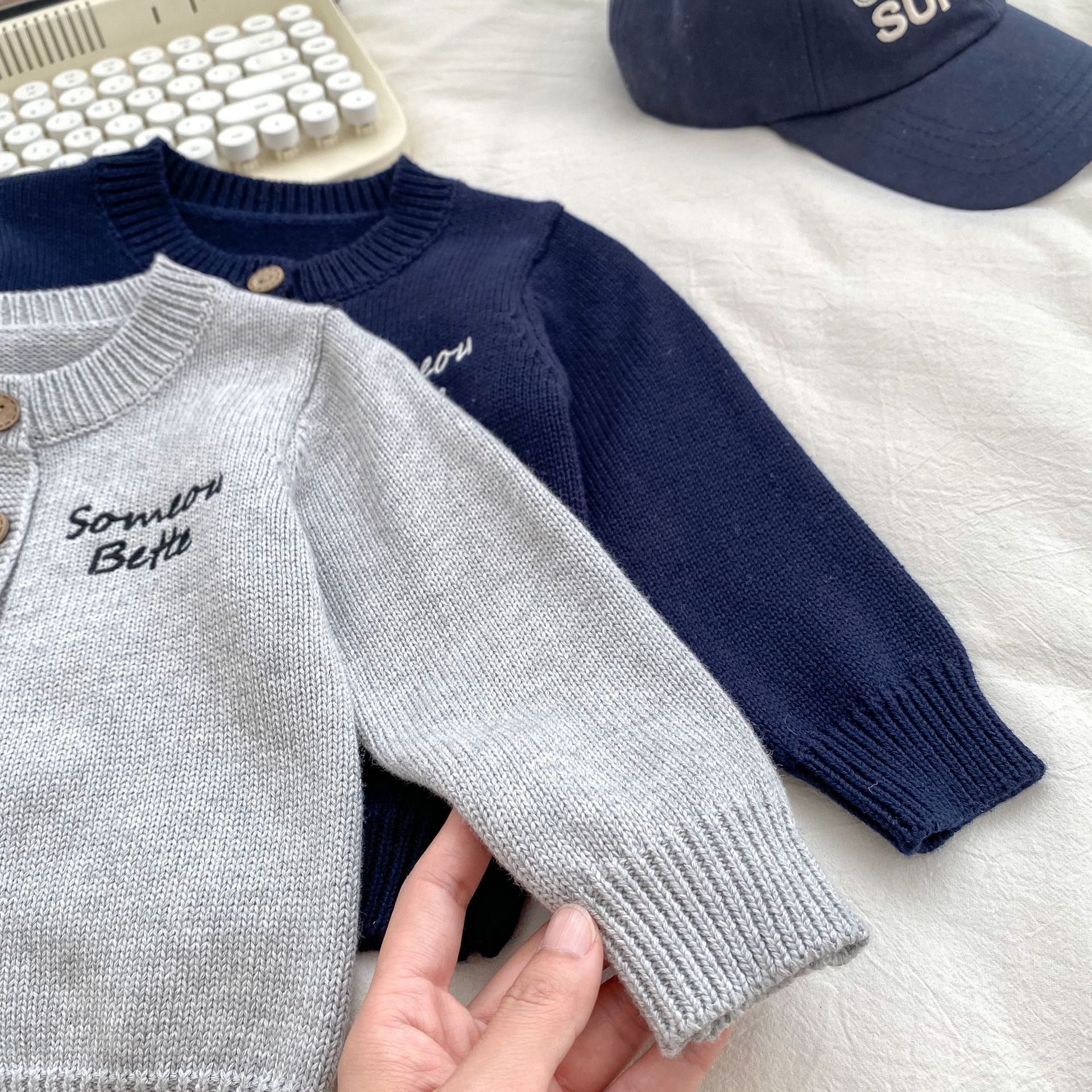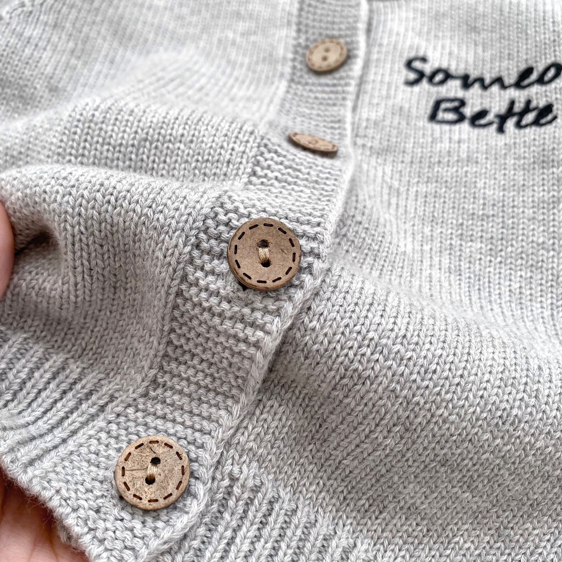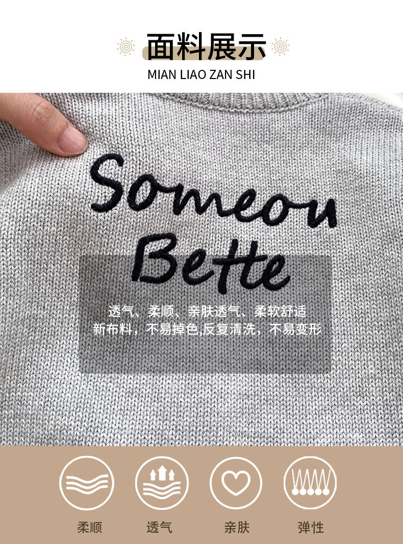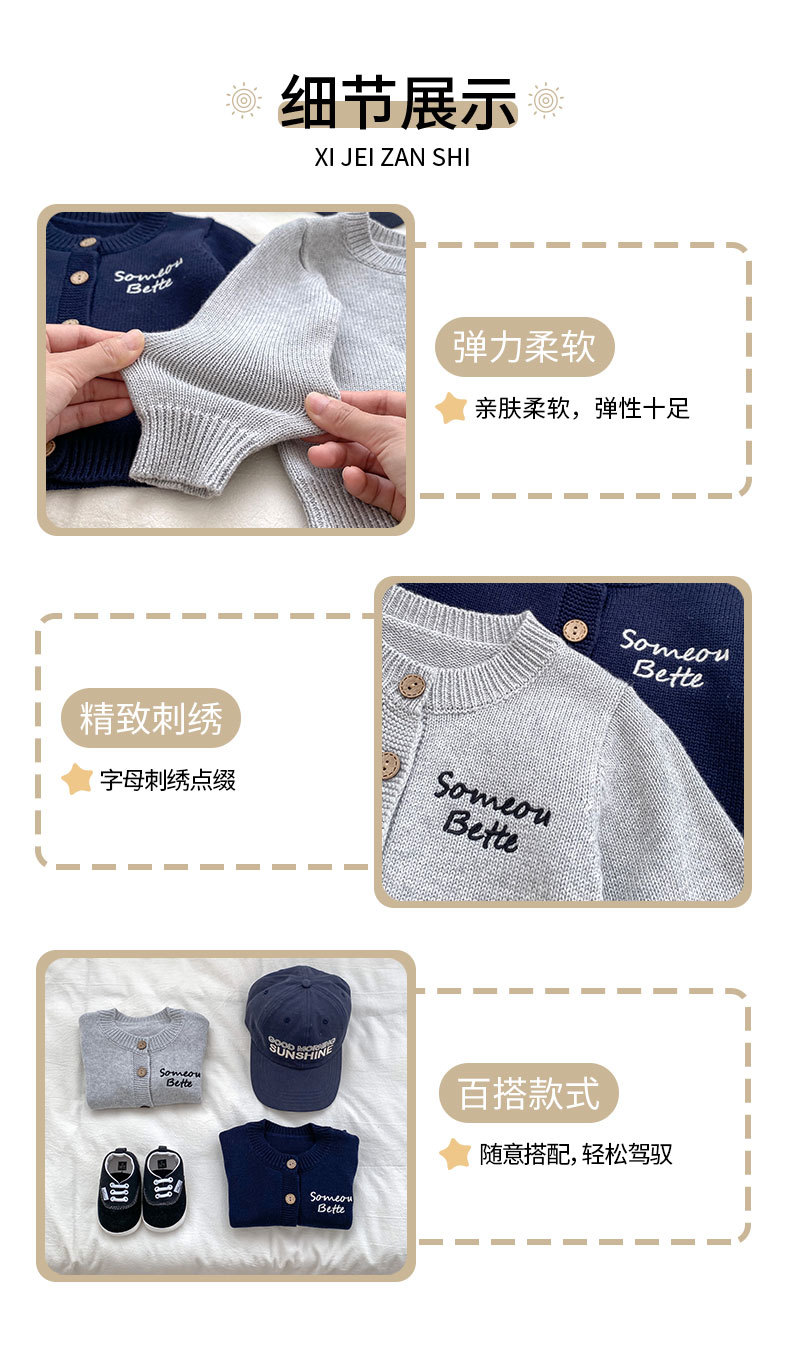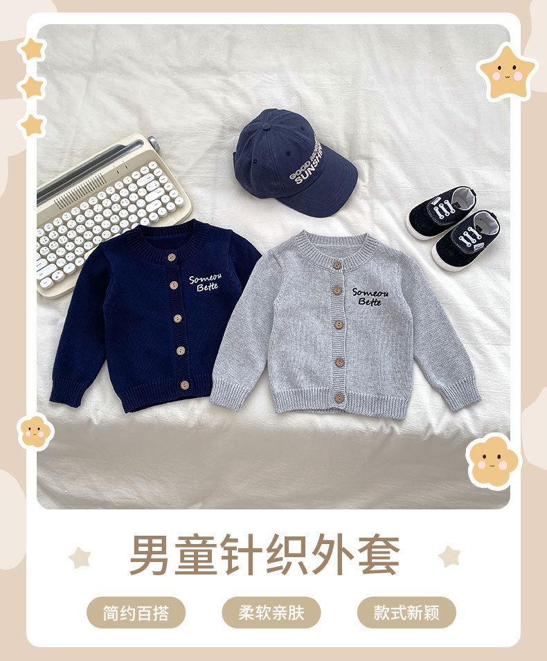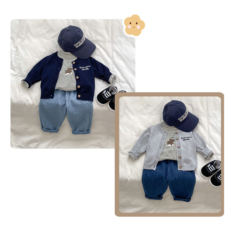 2024 소년 가을 새 아기 긴 소매 수제 편지 자수 카디건 니트 탑 의상 3 피스 세트스토어 가기