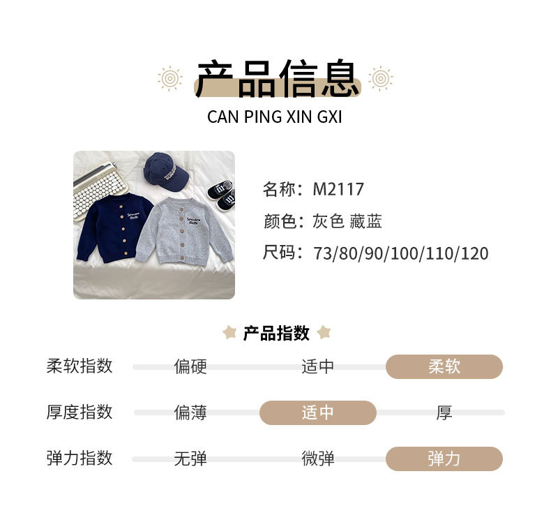 2024 소년 가을 새 아기 긴 소매 수제 편지 자수 카디건 니트 탑 의상 3 피스 세트