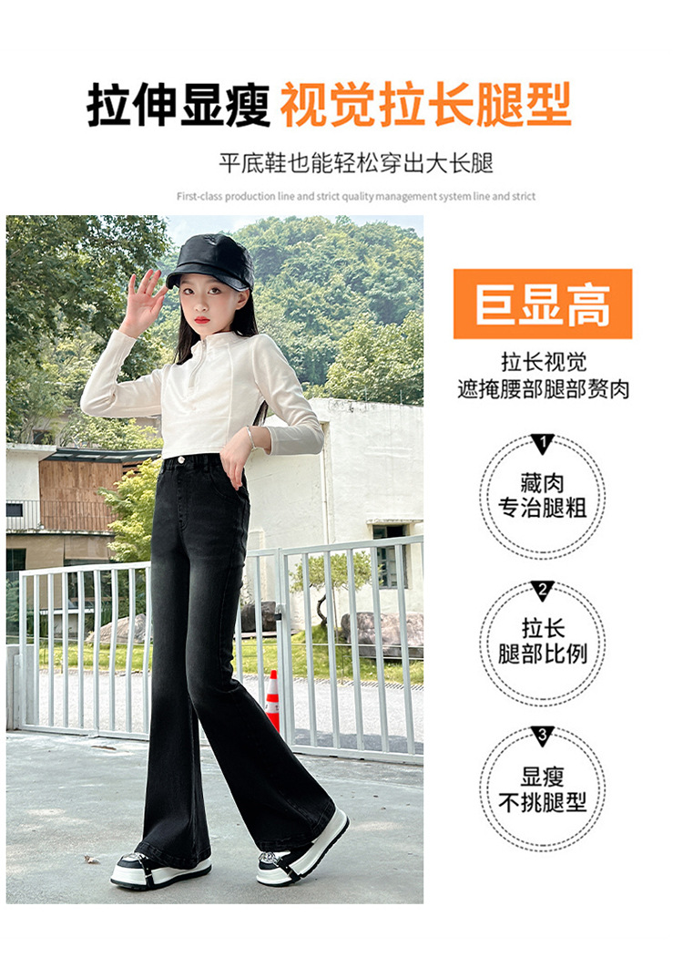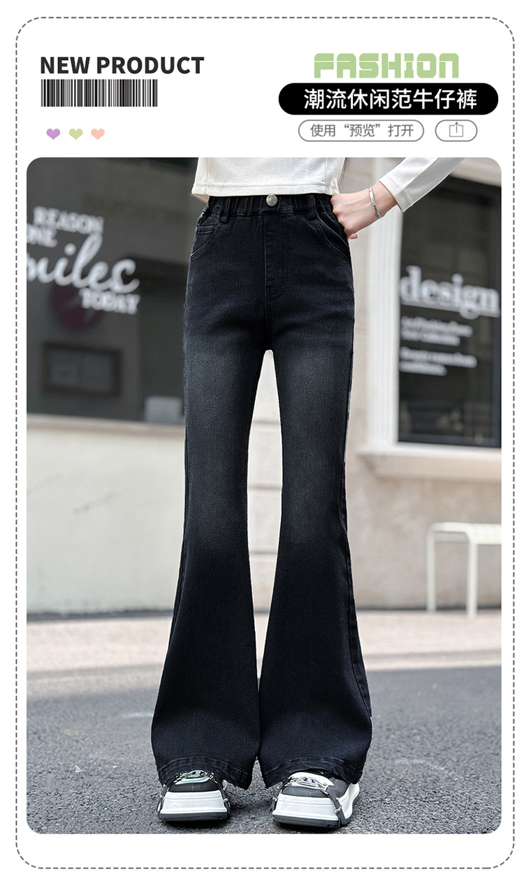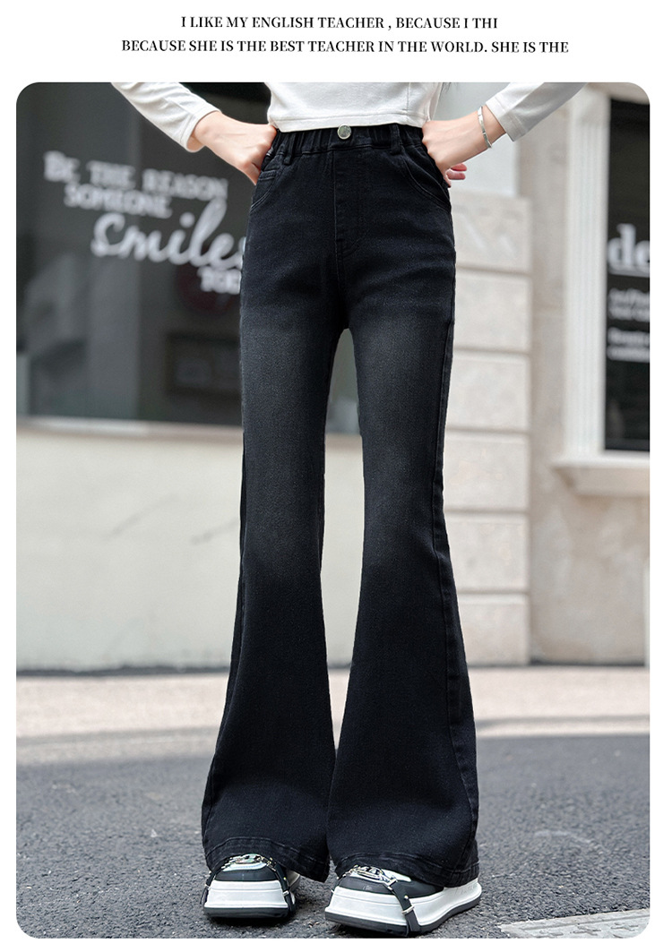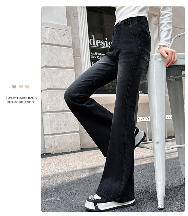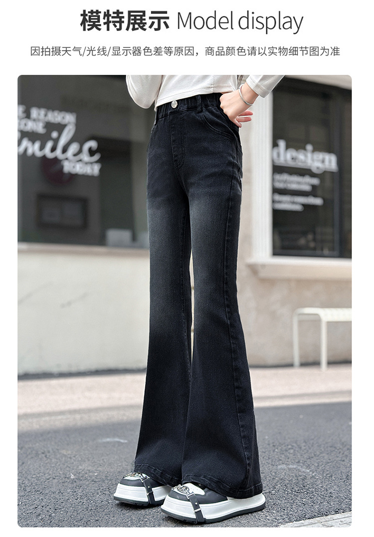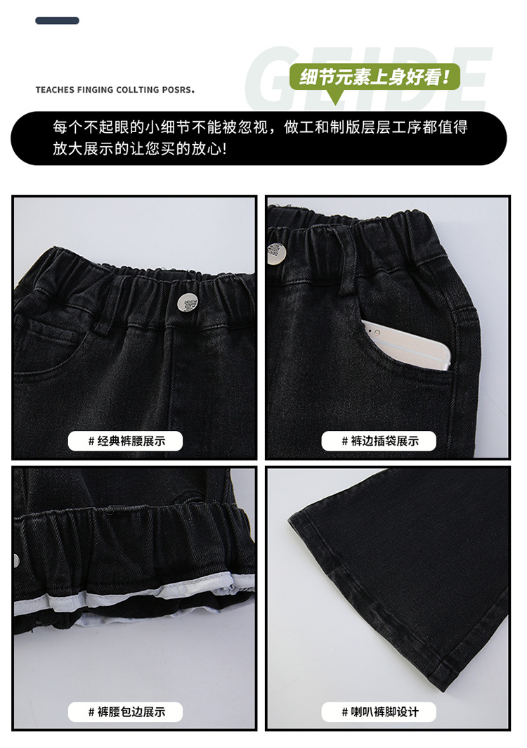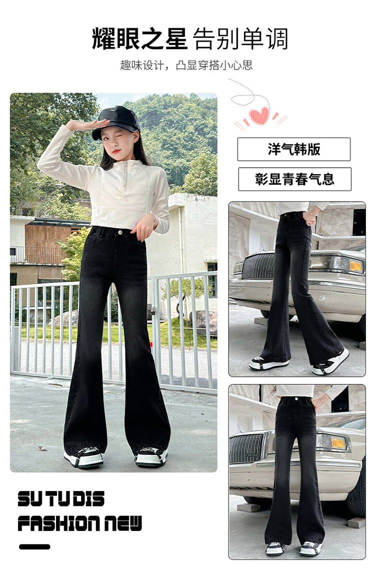 소녀 꽃 바지 2024 가을 새로운 세련된 세련된 세련된 세련된 바지 중 큰 어린이 세련된 세련된 청바지 바지스토어 가기