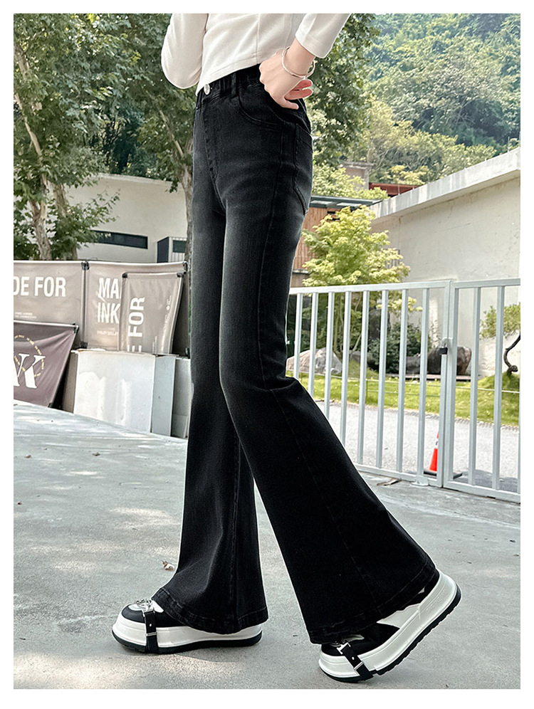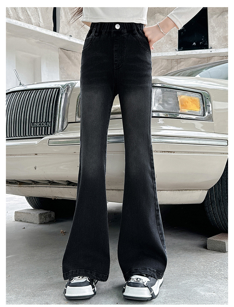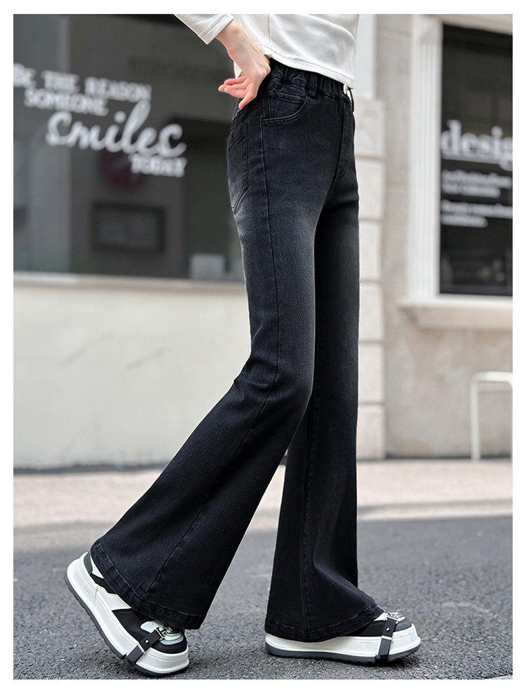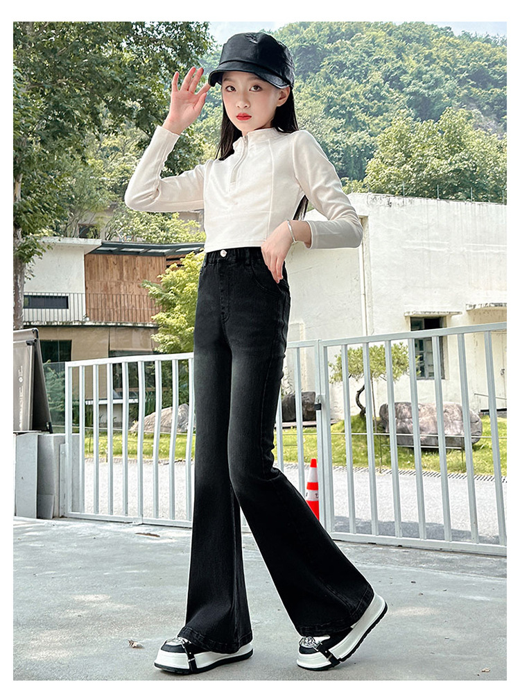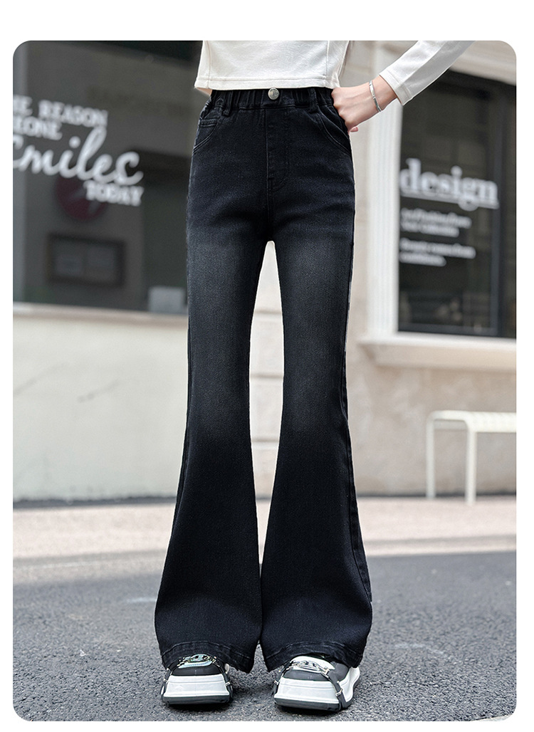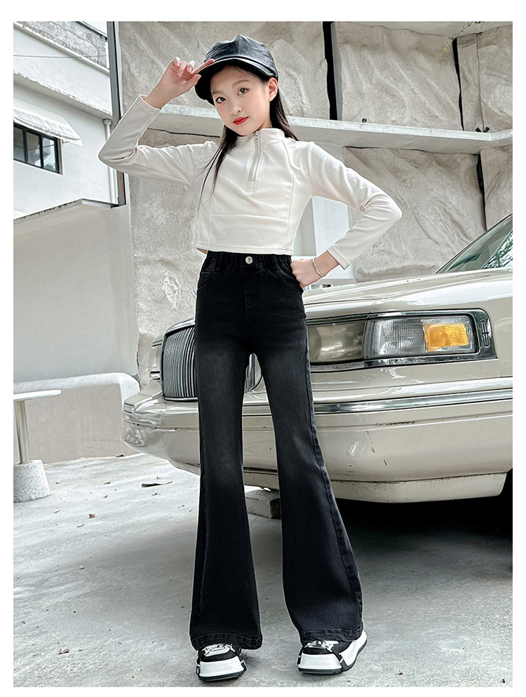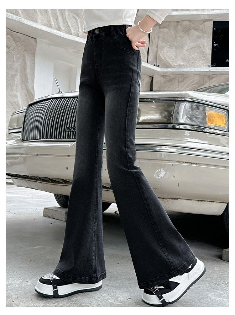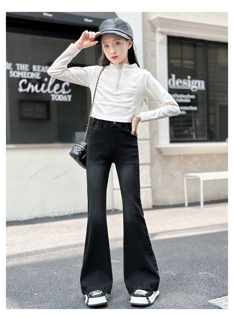 소녀 꽃 바지 2024 가을 새로운 세련된 세련된 세련된 세련된 바지 중 큰 어린이 세련된 세련된 청바지 바지스토어 가기