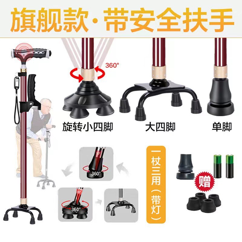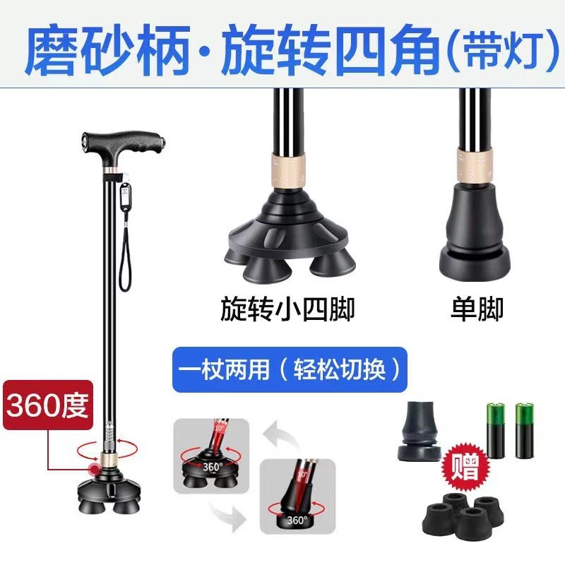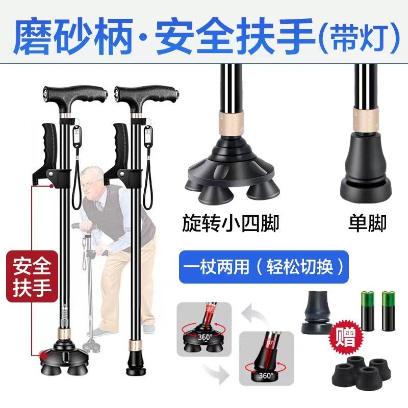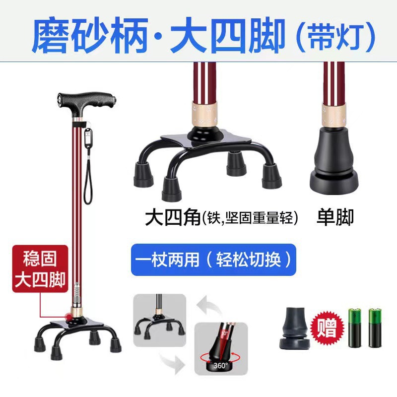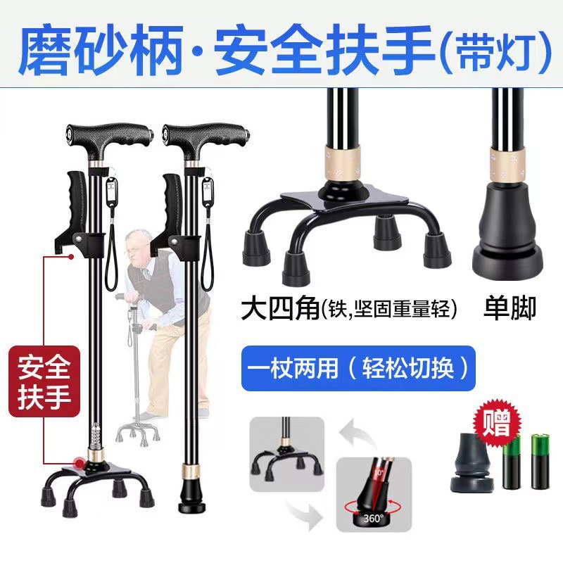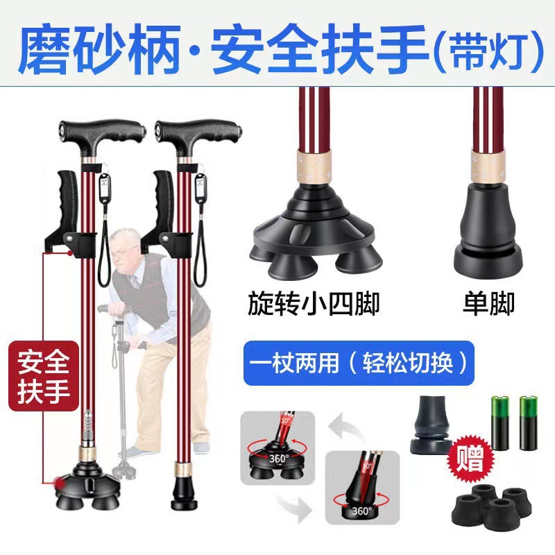 노인 목발 안티 가을 미끄럼 방지 목발 지팡이 의료용 4 개 지팡이 다기능 망원경 경량 알루미늄 합금 도매